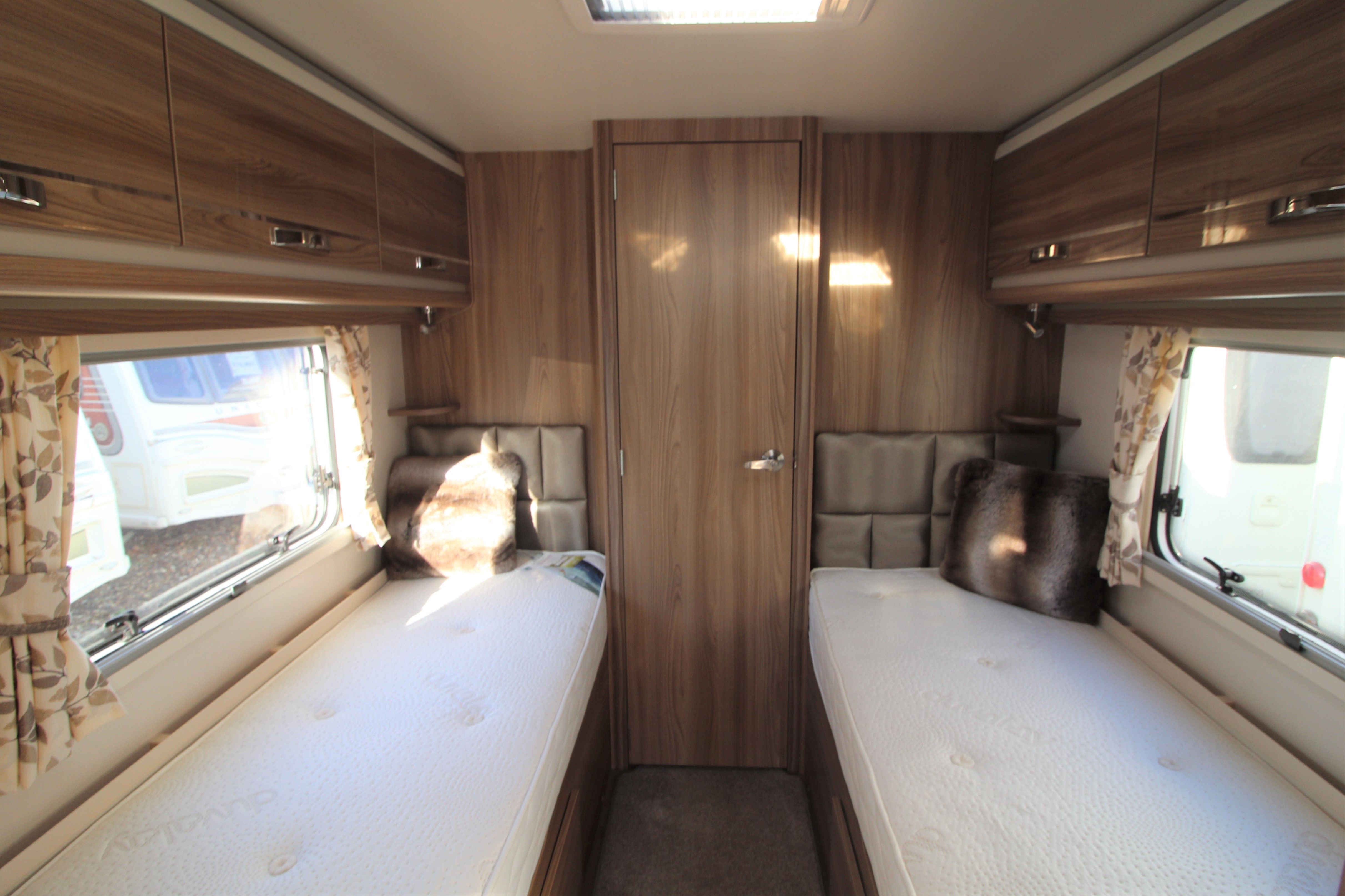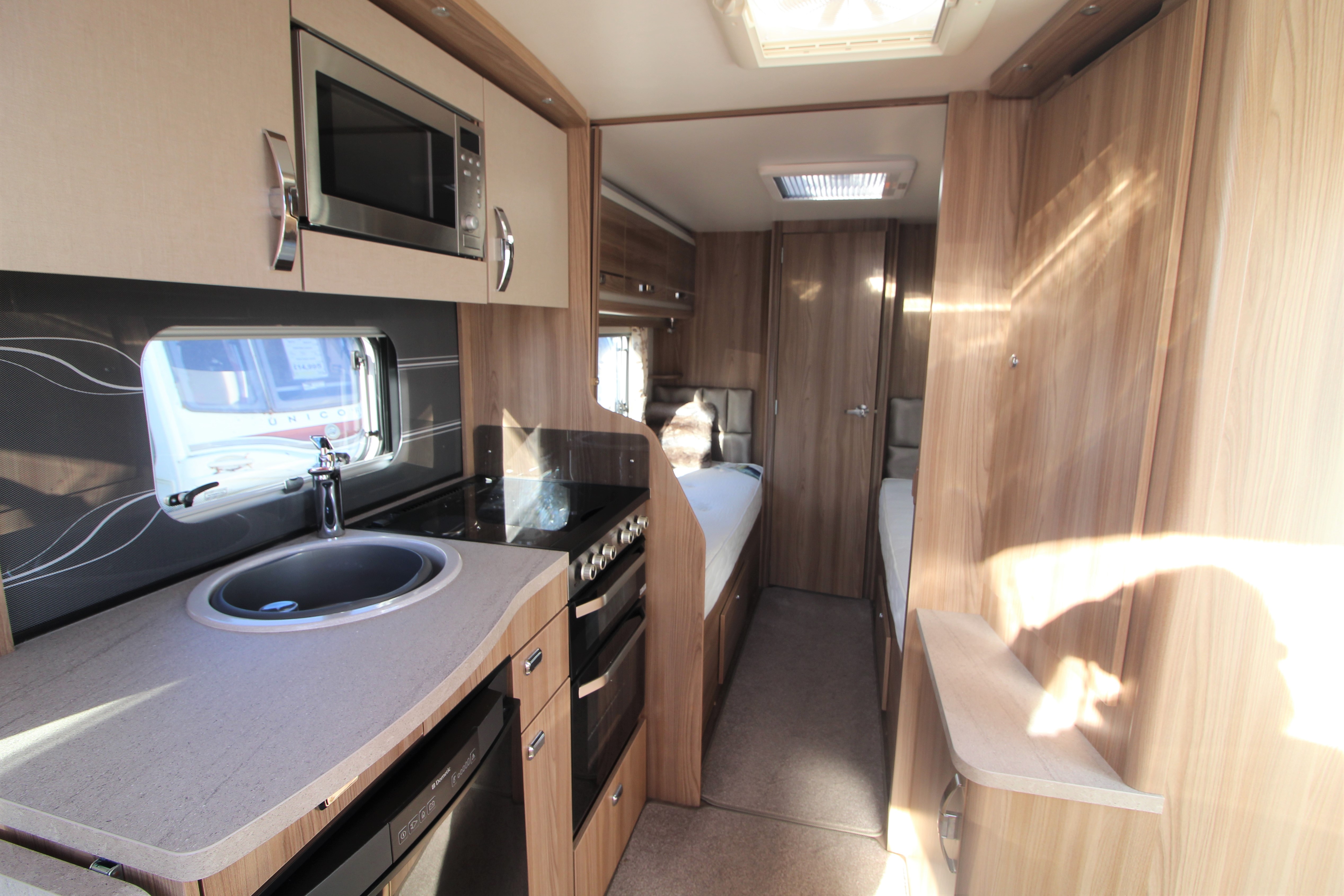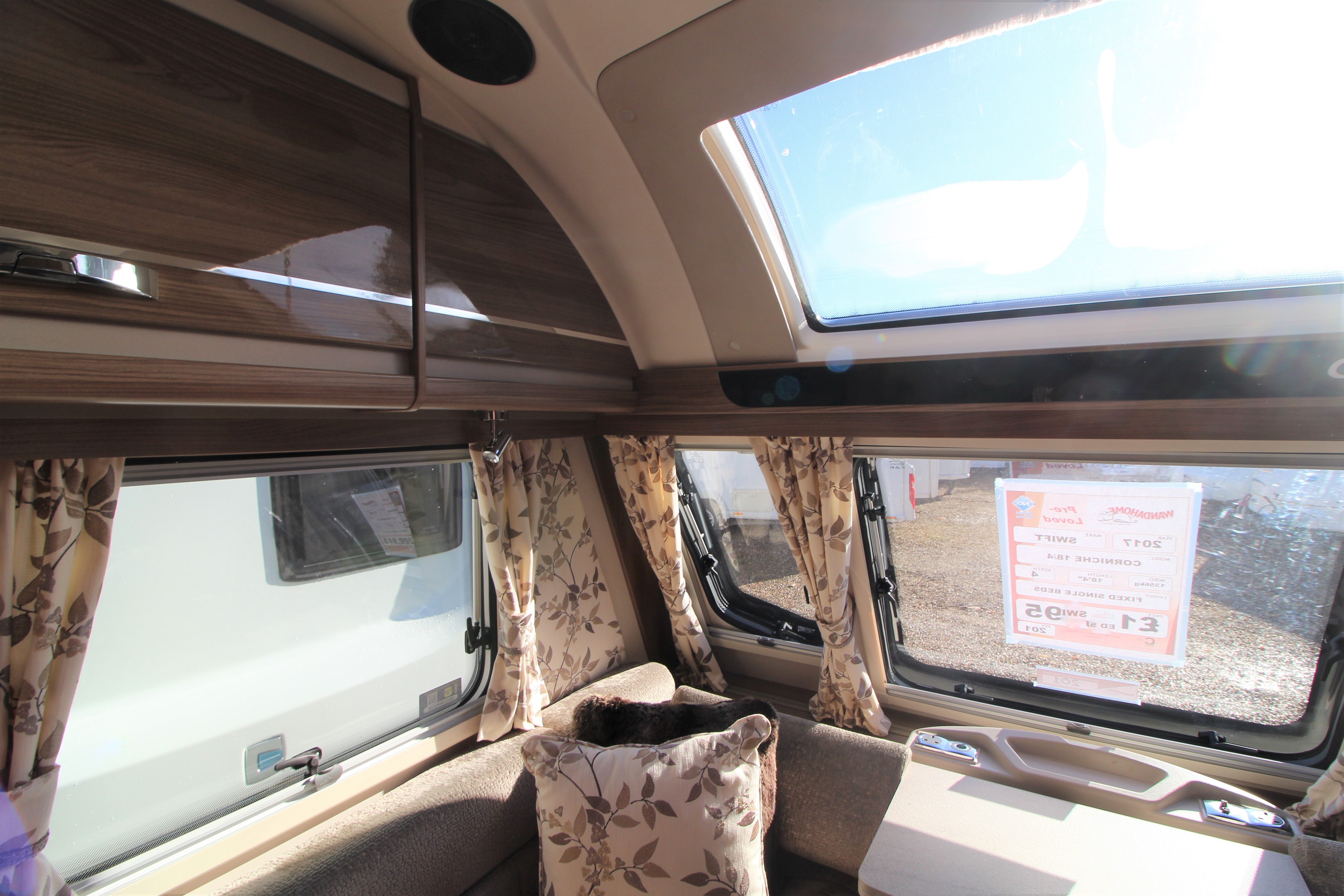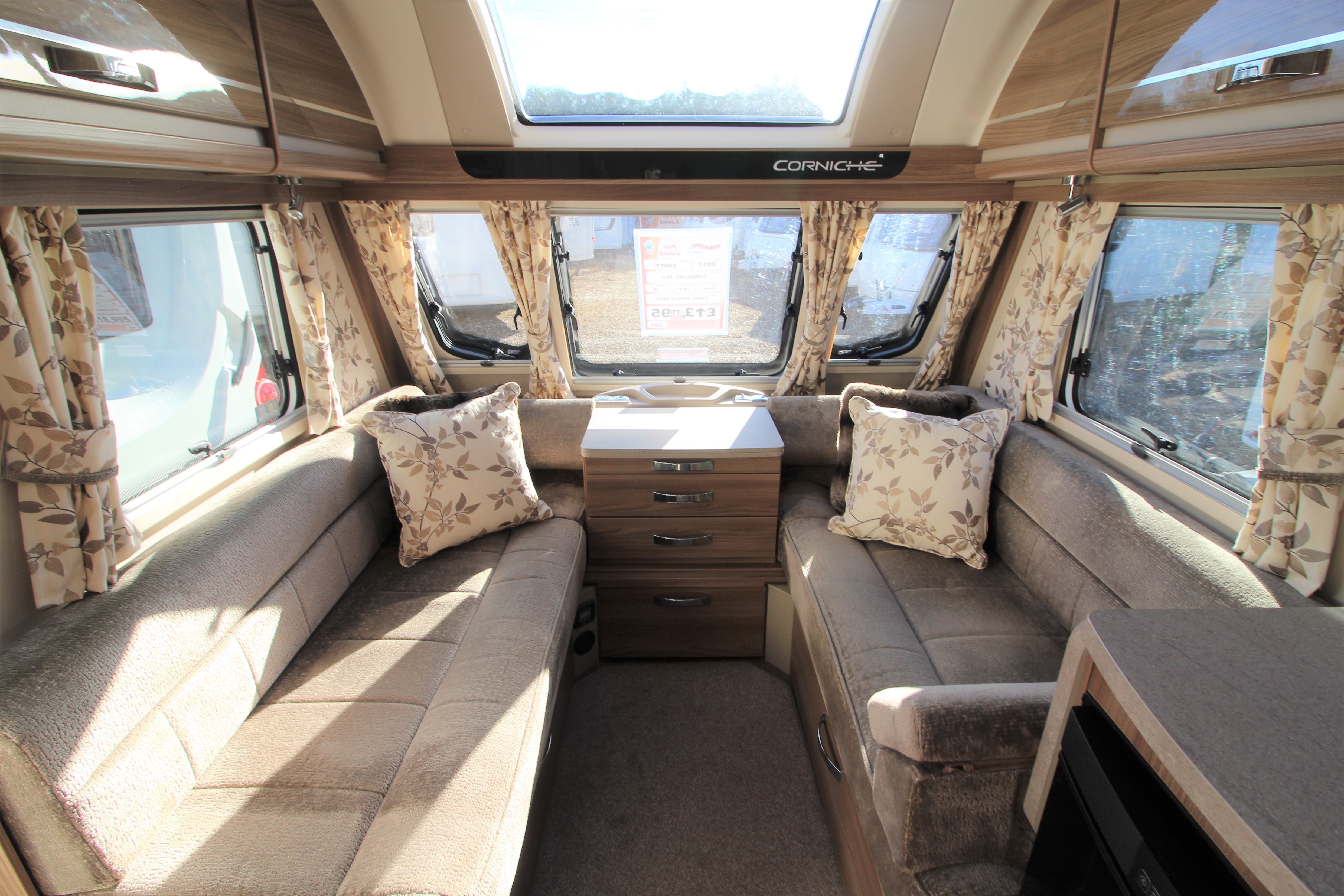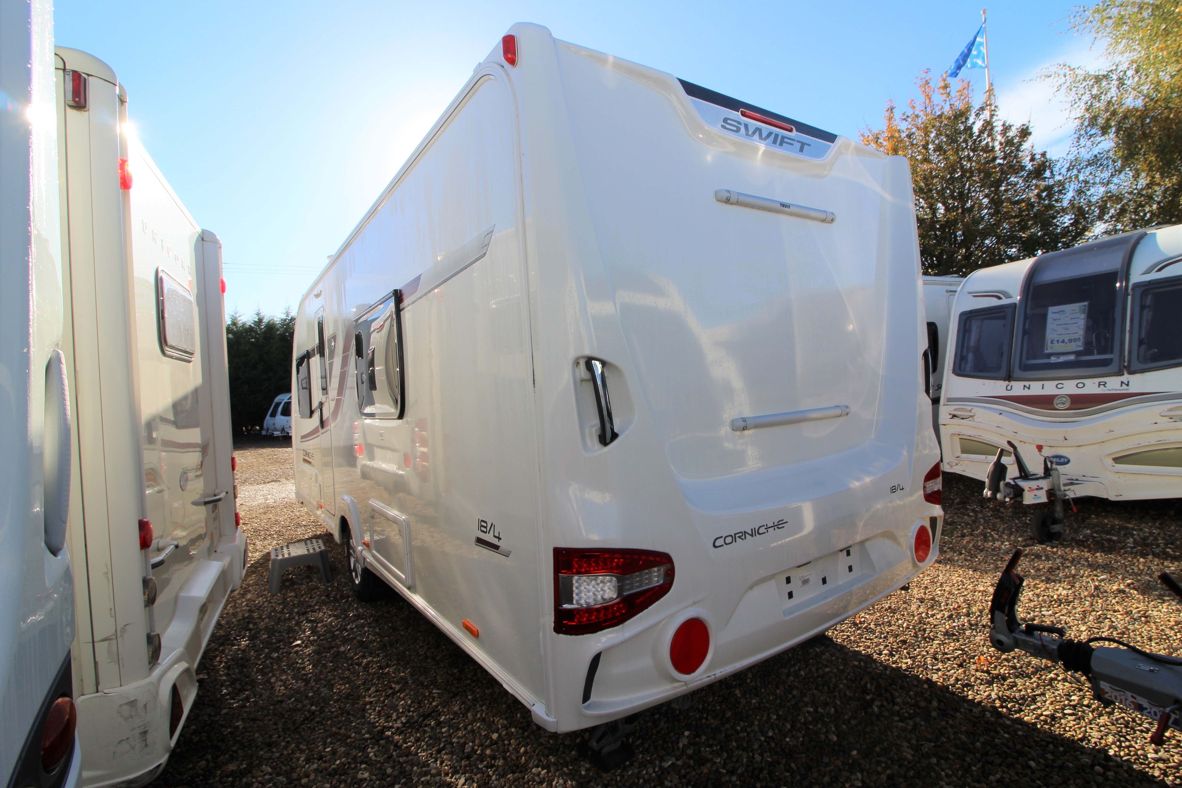 This stunning 2017 Corniche 18/4 is a Wandahome Special Edition and comes with an extremely high spec and beautifully designed interior. The fixed single beds provide practicality and comfort for either a family with small children or a couple who enjoy a little extra space and convenience. Fitted extras include, a Solar Panel, Alarm, External Gas BBQ point, and External 240v Socket plus many more. The bright and contempoary lounge has latest colour designs and offers a small double should it be needed. Theres plenty of Storage in over head lockers throughout the vehicle. The kitchen contains a gas cooker with electric hot plate-always useful should you run out of gas, a microwave, oven and grill. The Bathroom doubles up as a space to get changed in and includes extra storage space. A perfectly presented caravan that must be viewed!