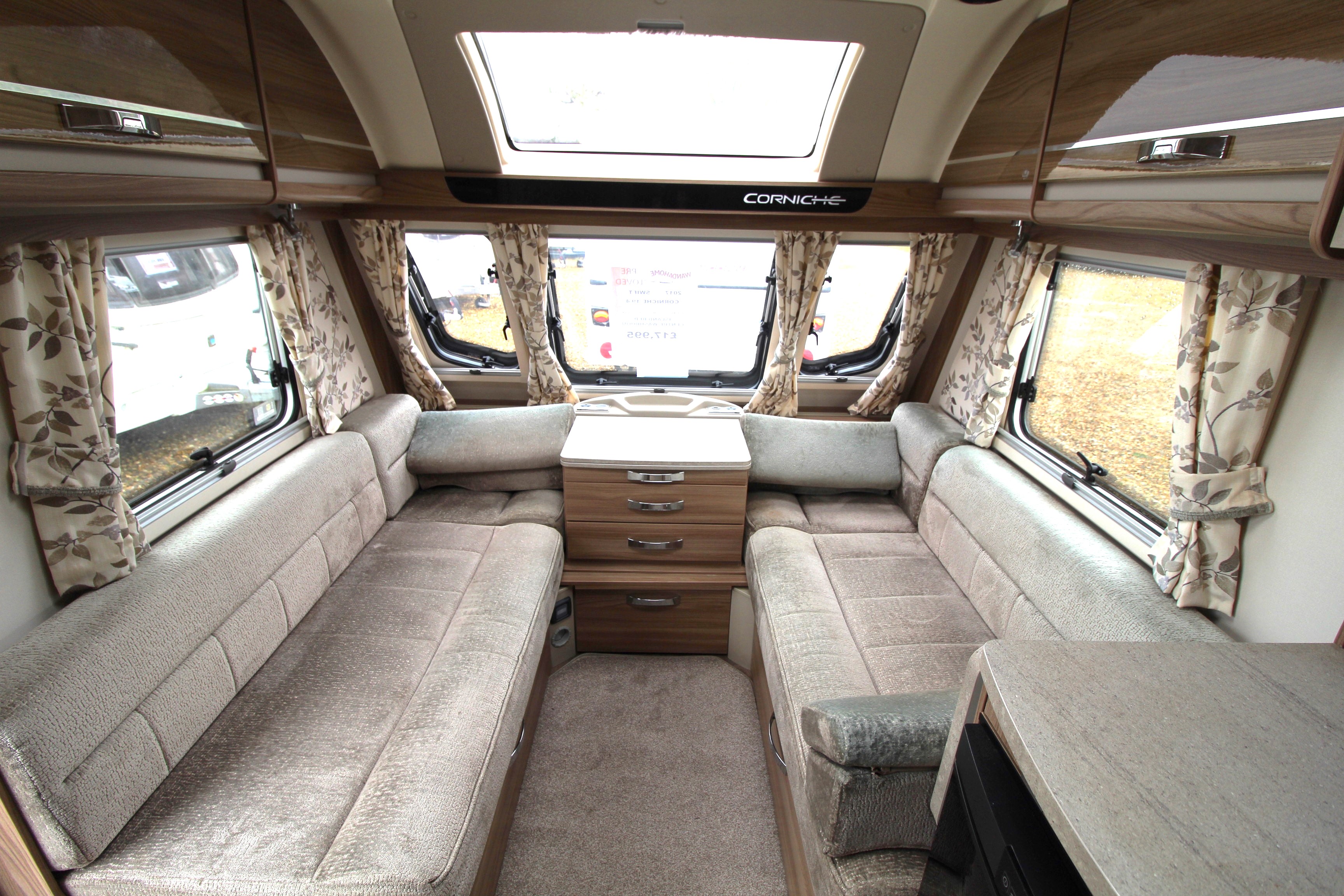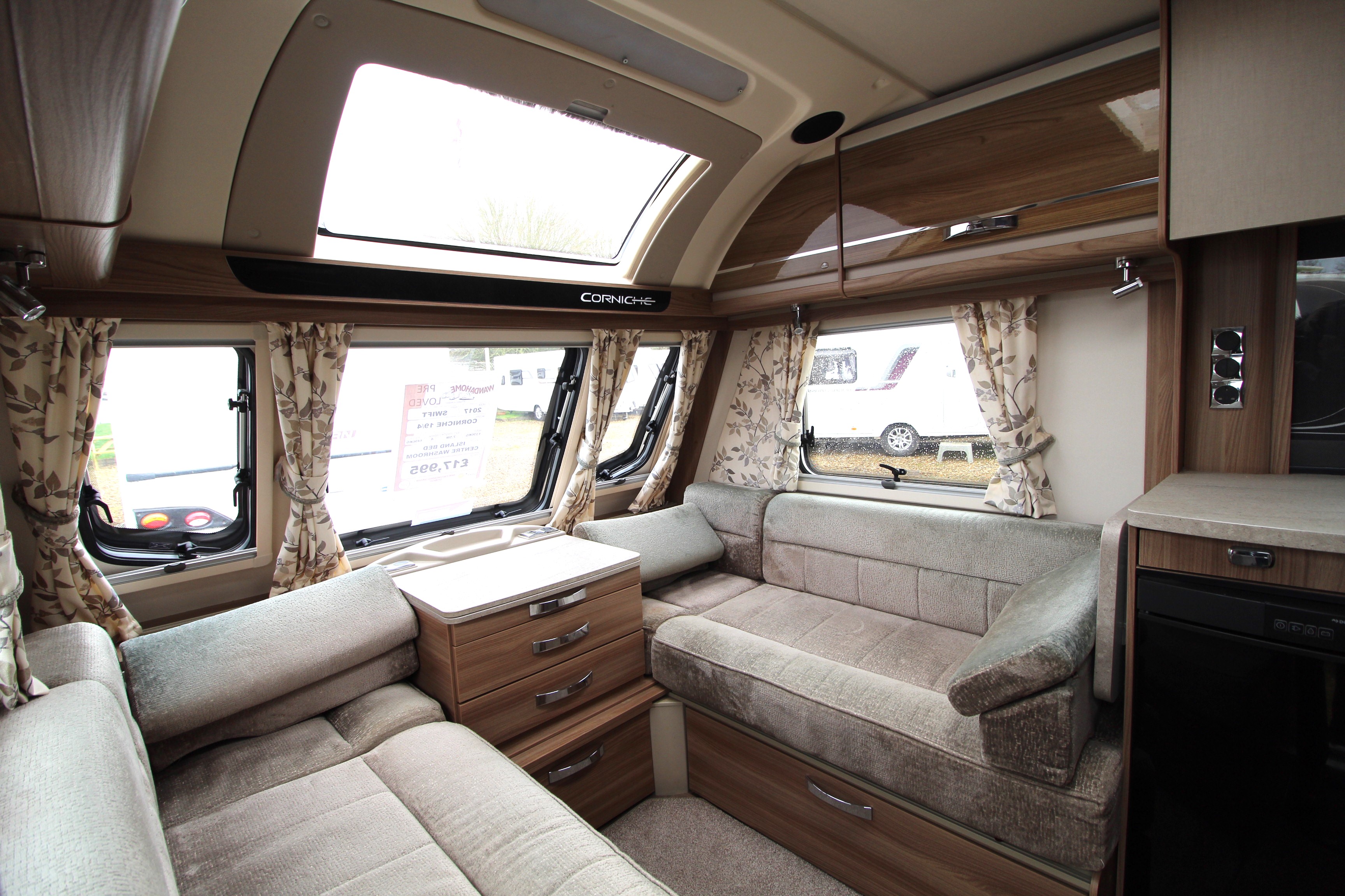 Step inside this pre-loved 2017 Swift Corniche 19/4 Wandahome Special Edition four berth luxury caravan that is offered in excellent condition throughout. Benefitting from a centre washroom and fixed island bed this caravan is offers privacy for guests staying the night due to the central washroom that divides the main lounge area from the bedroom. Ideal for the touring couple or small family.