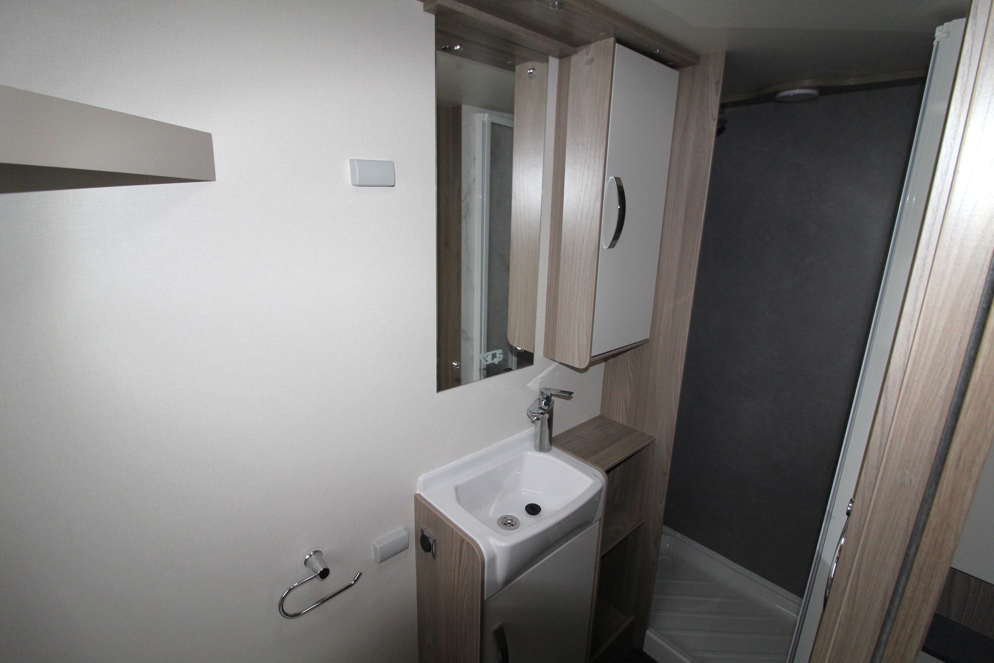 The full width end washroom provides cassette toilet, vanity wash basin with cupboard below and mirror over and a generous shower cubicle.