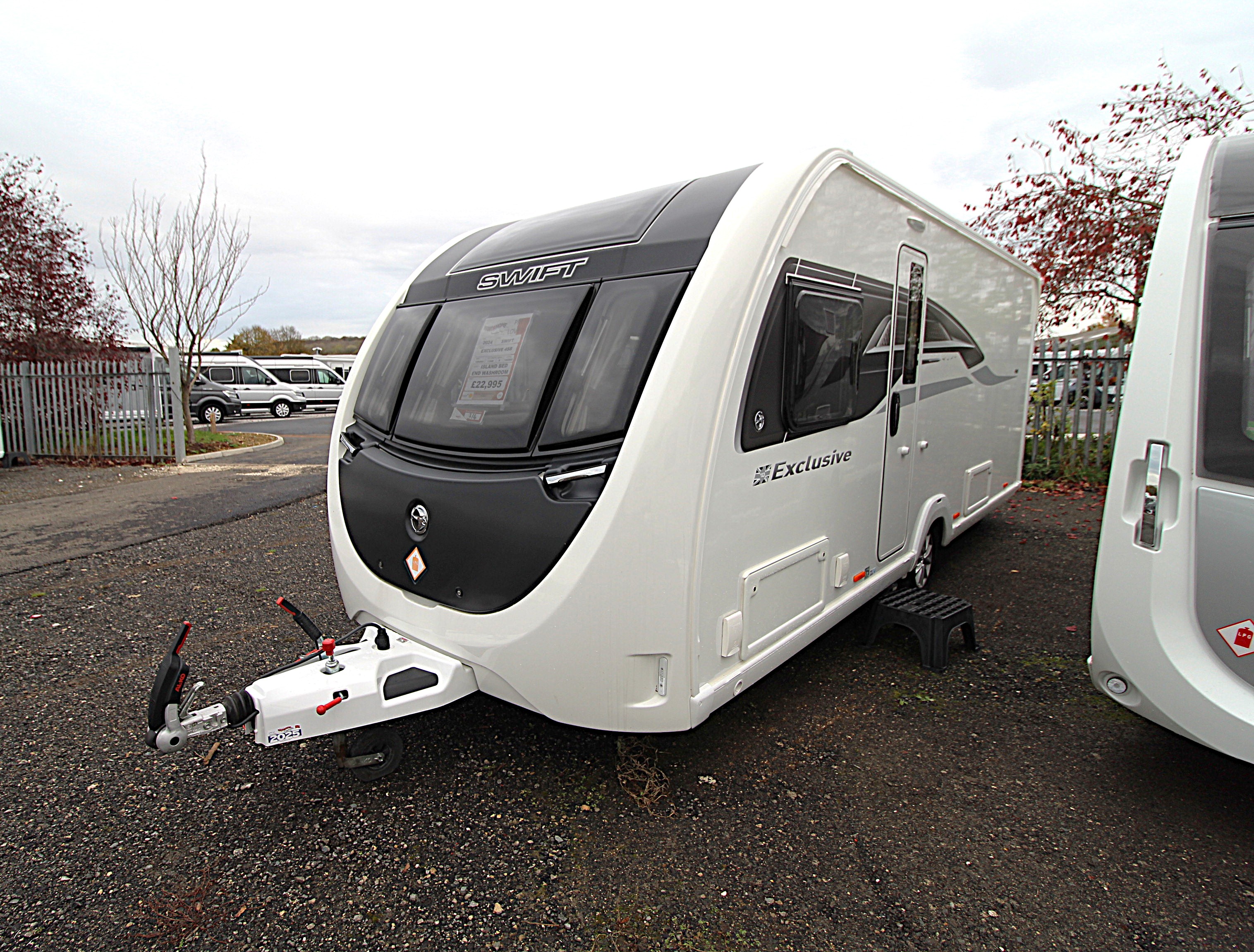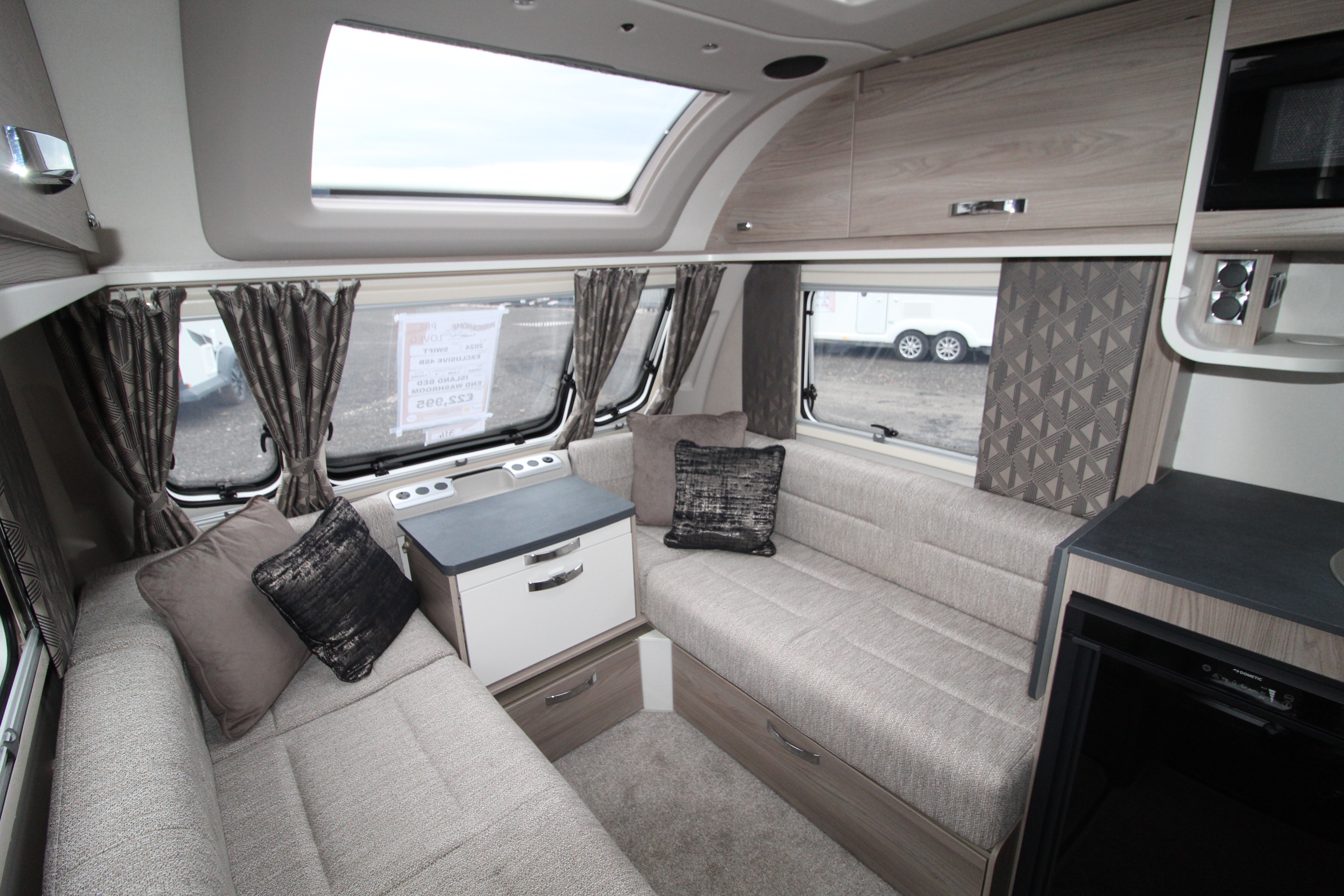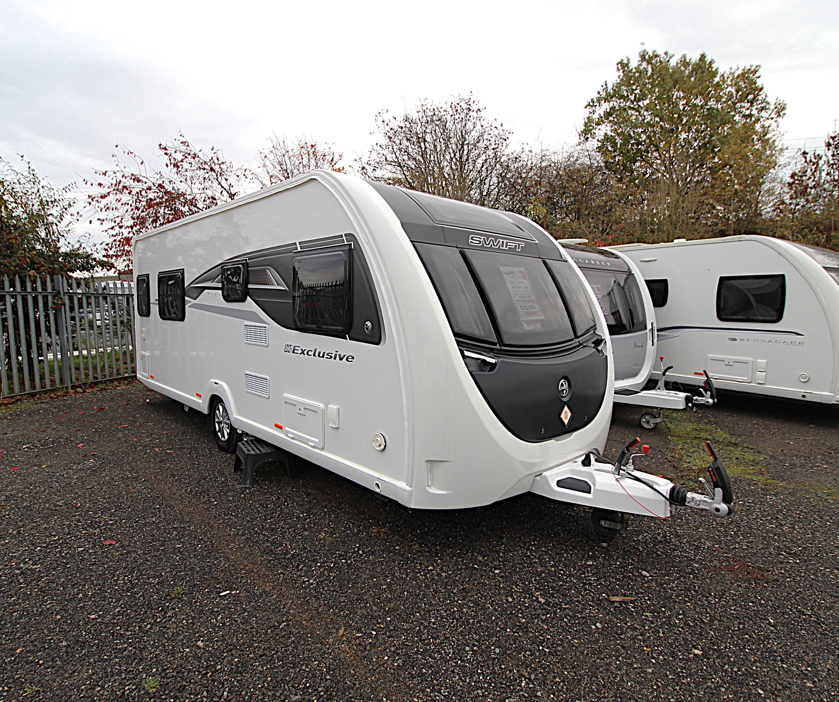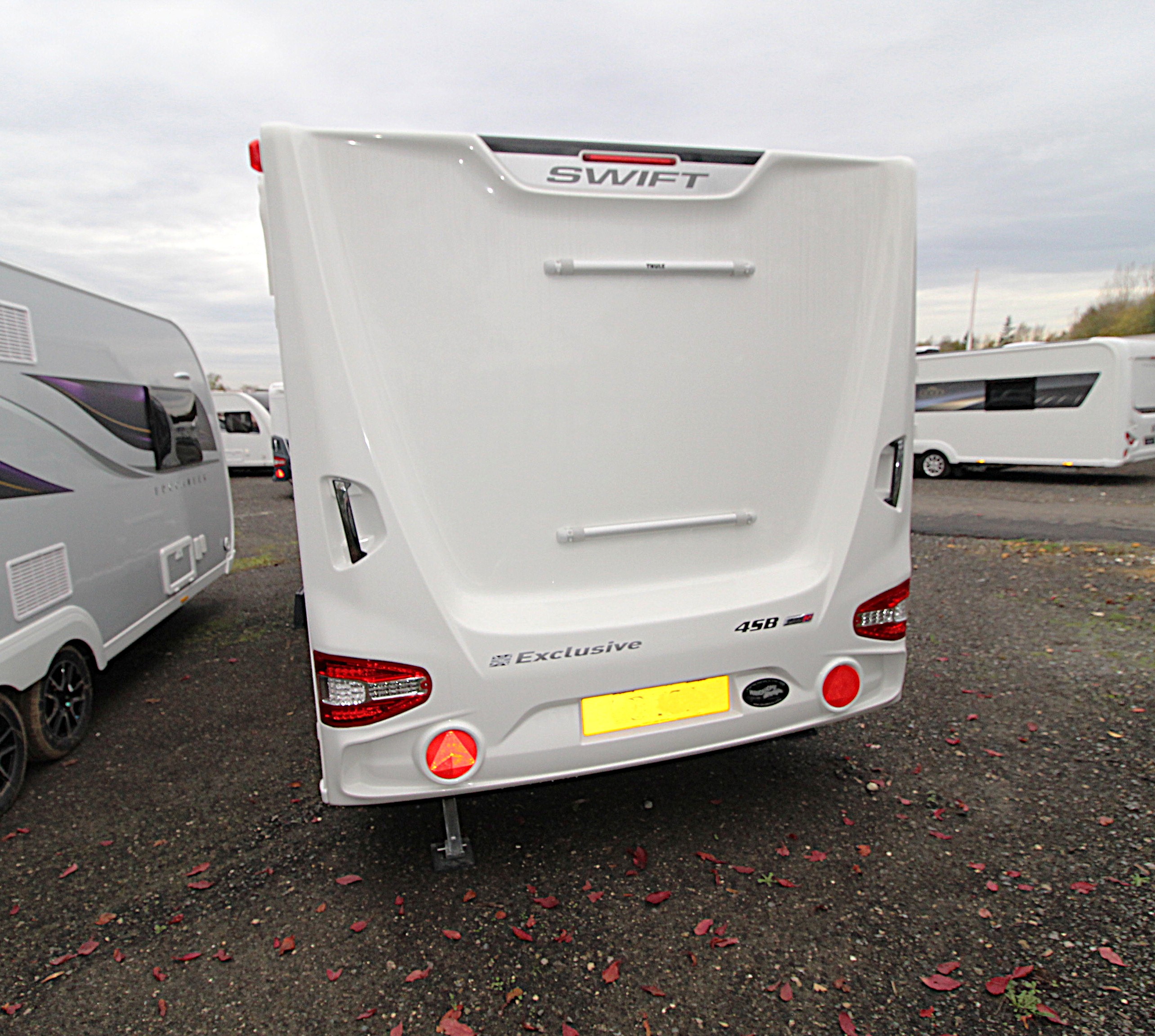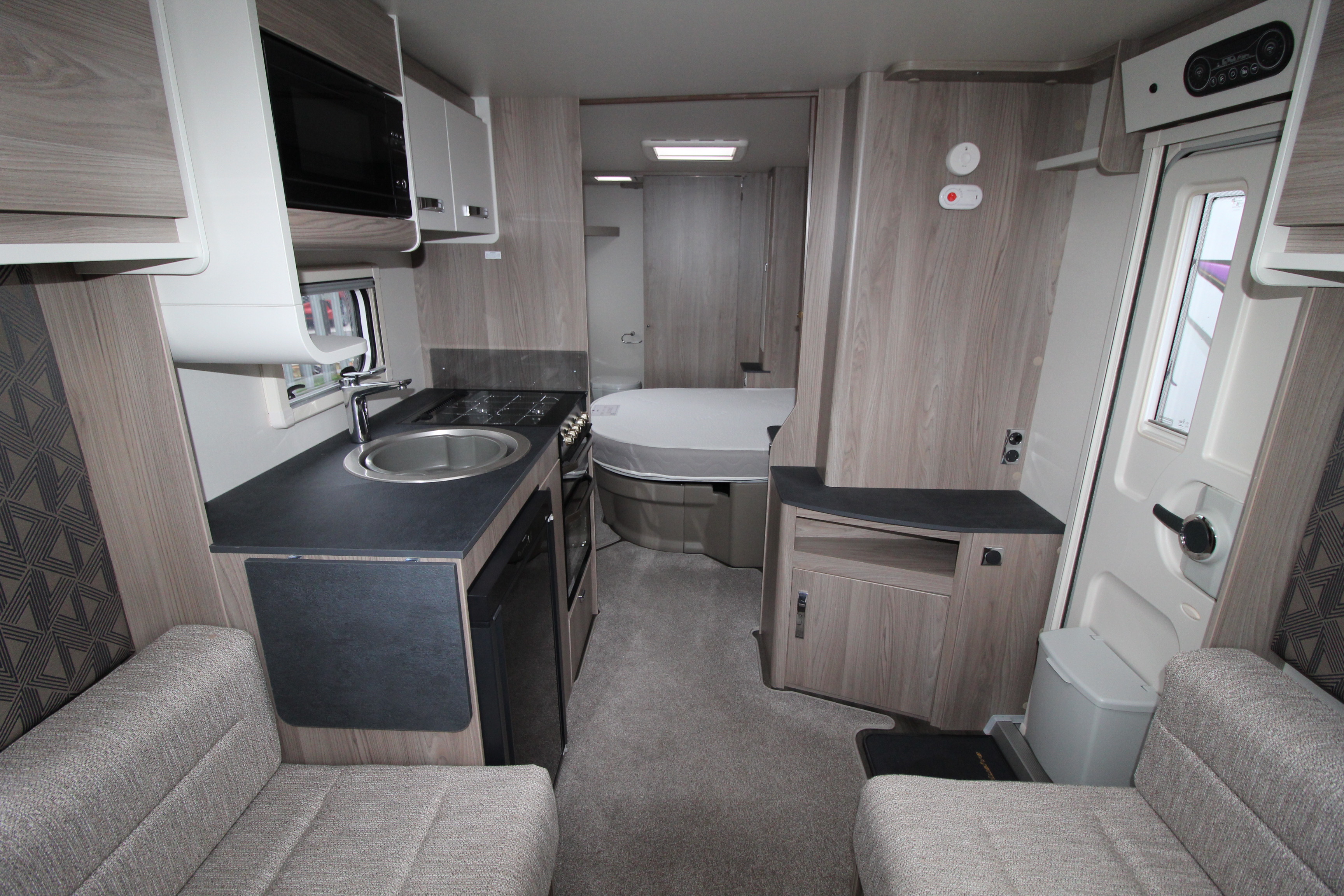 Step inside this pre-loved 2024 Swift Exclusive 4 SB, special-edition, four-berth caravan presenting an open plan layout with transverse island bed and full width end washroom.