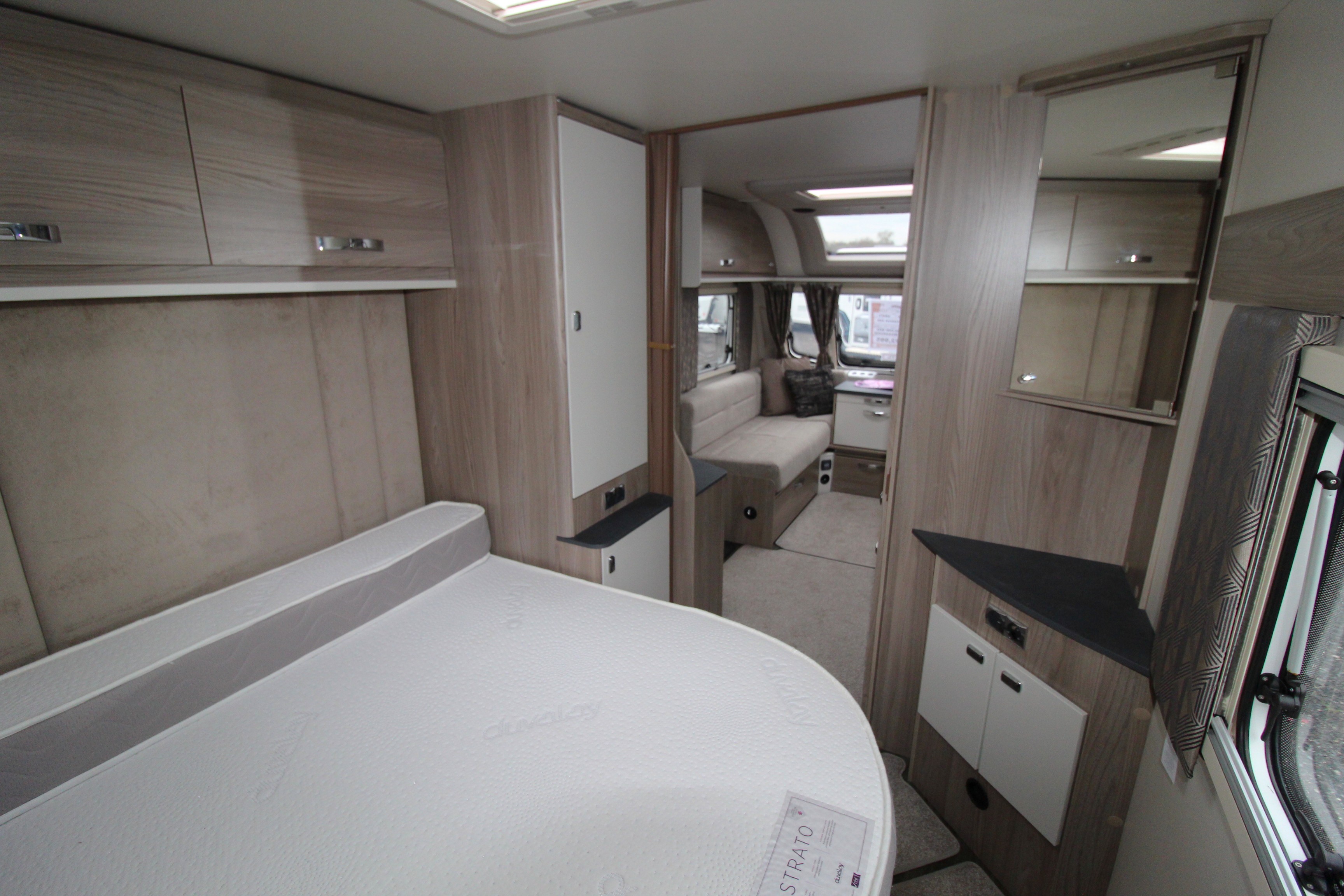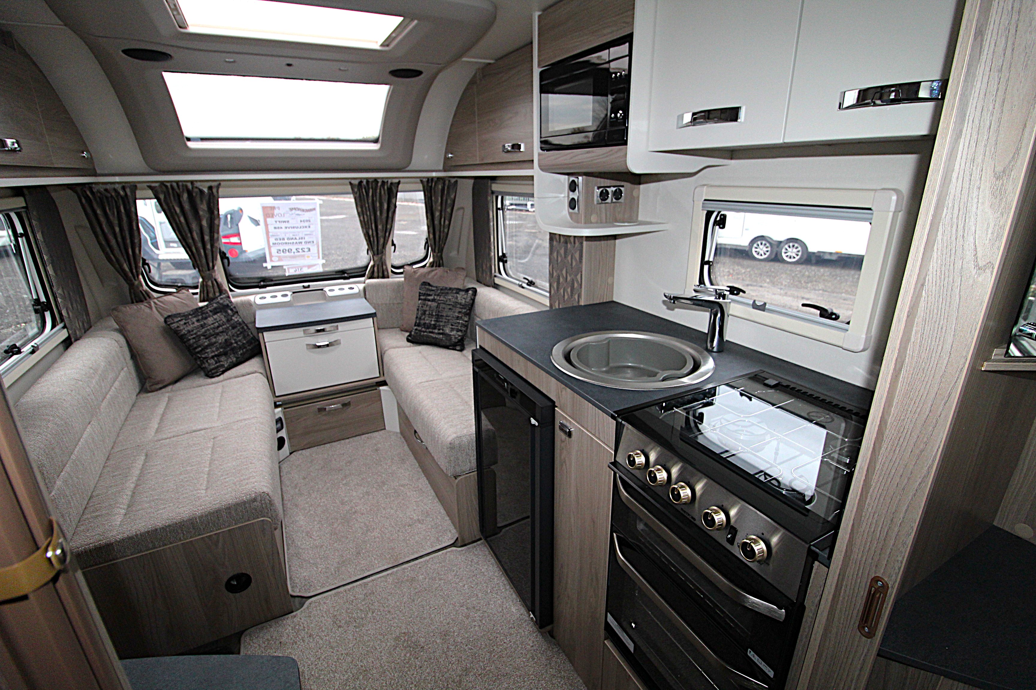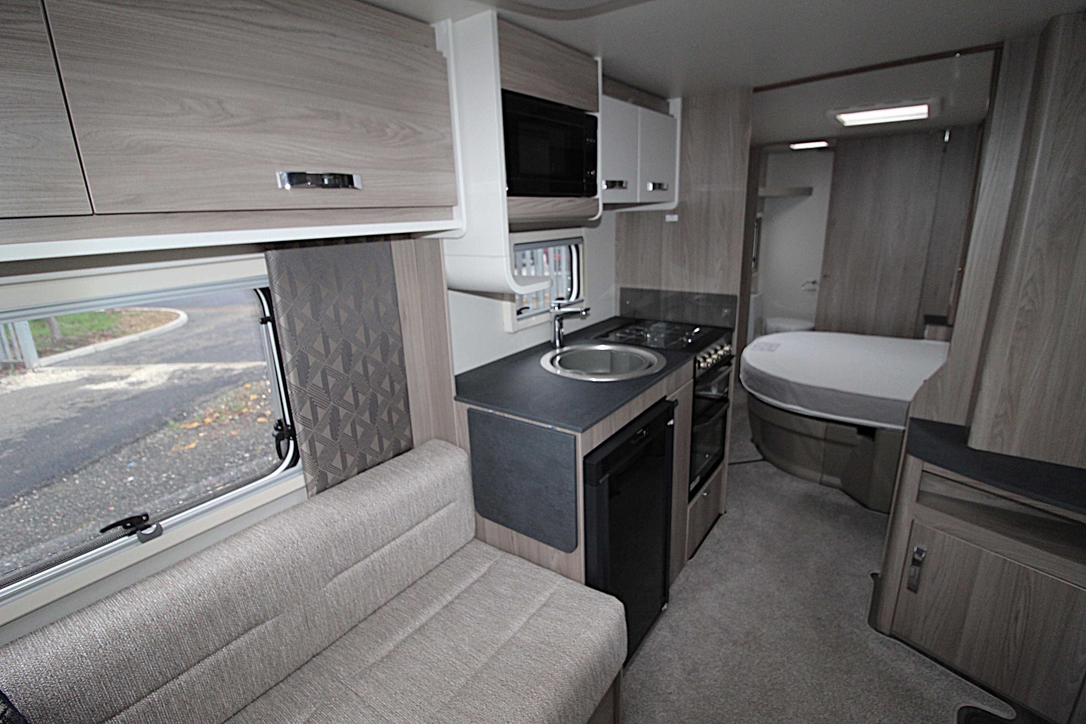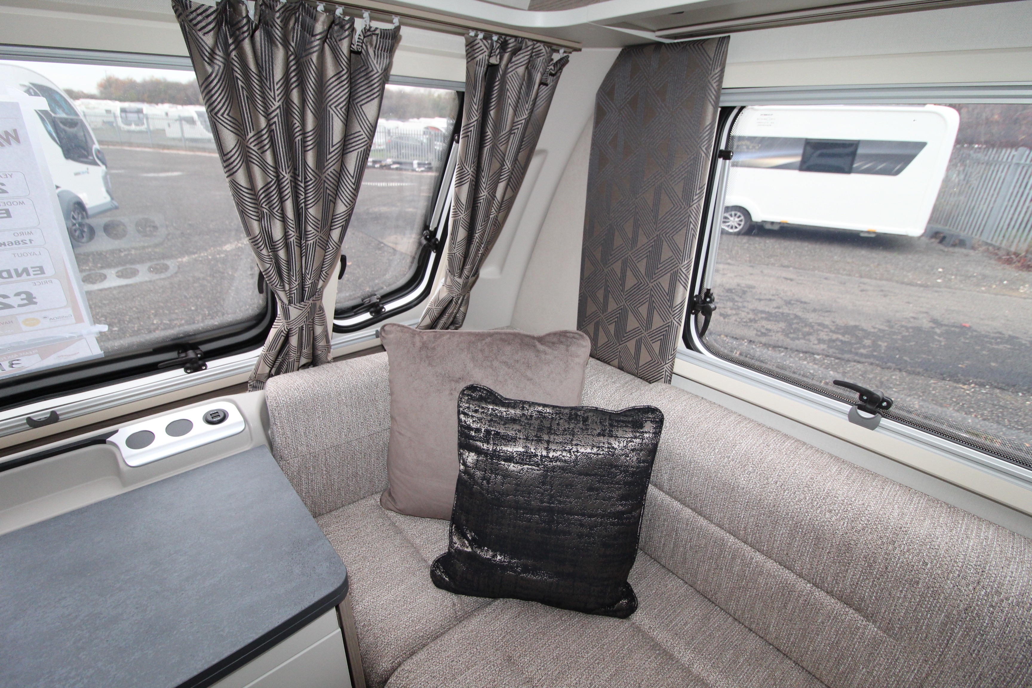 Step inside this pre-loved 2024 Swift Exclusive 4 SB, special-edition, four-berth caravan presenting an open plan layout with transverse island bed and full width end washroom.
