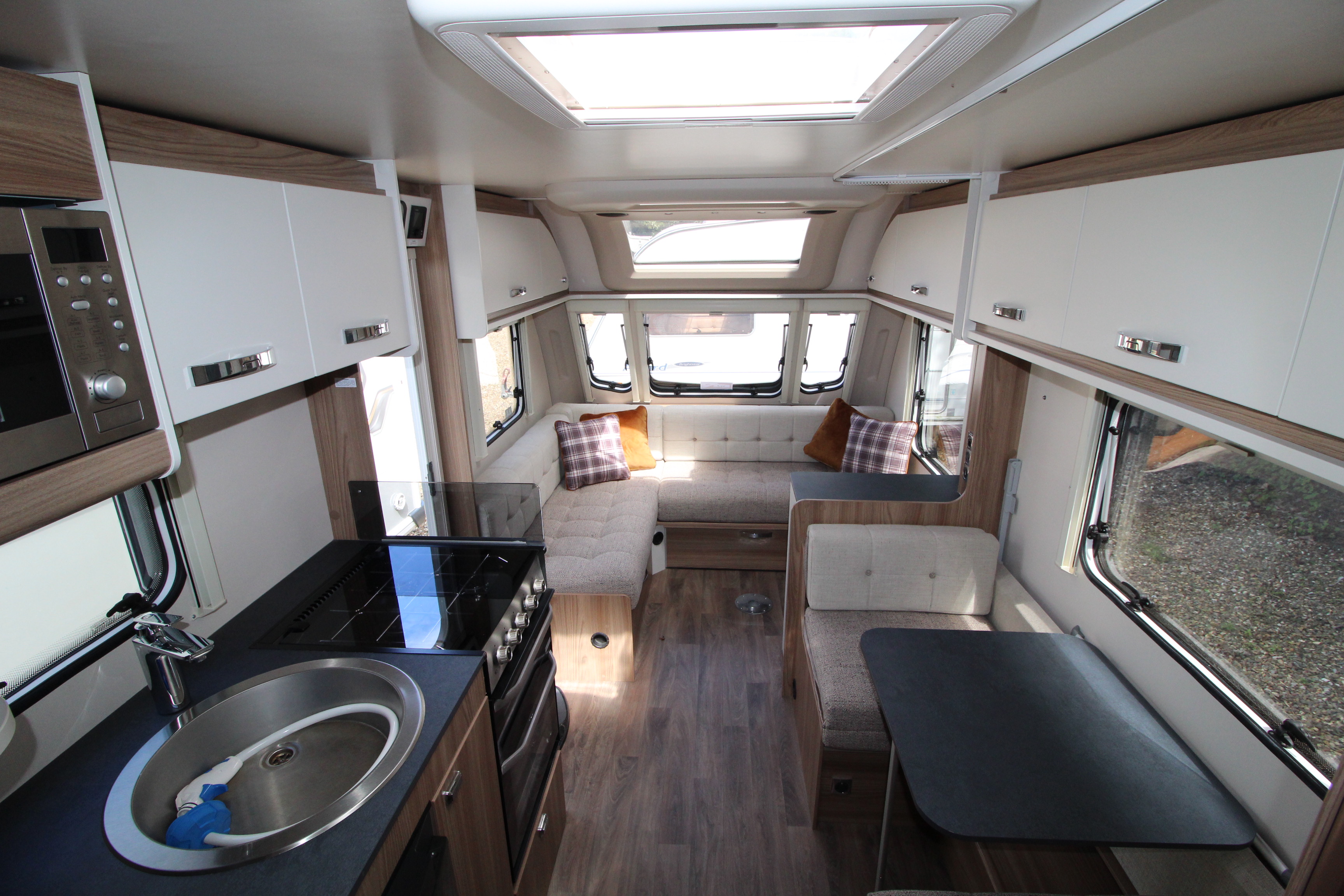 The spacious front lounge area with its L-shape lounge area with adjacent side dinette comfortably seats up to 6 people. With the front lounge area converting to one large double and the side dinette converting to a bunk area you have plenty of sleeping accommodation for the family.