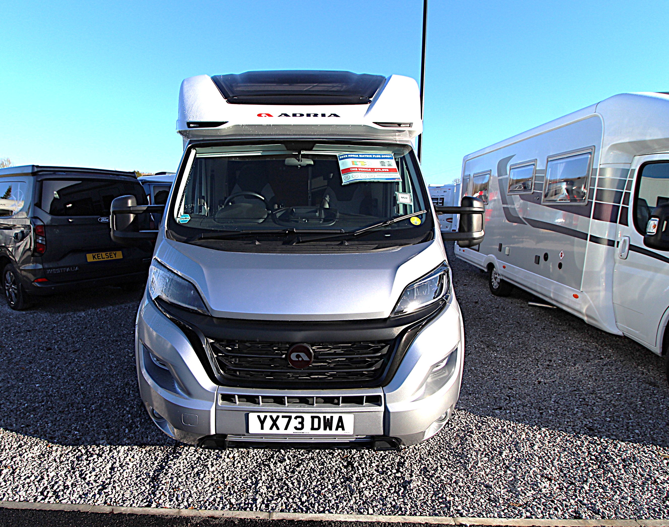 This pre-loved 2023 Adria Matrix 600 DT Plus is a spacious, four-berth, premium luxury motorhome. Designed for all year-round use and benefitting from generous storage areas this motorhome with its spacious lounge area, overhead electric drop down bed and full width end washroom should be at the top of your list to view.