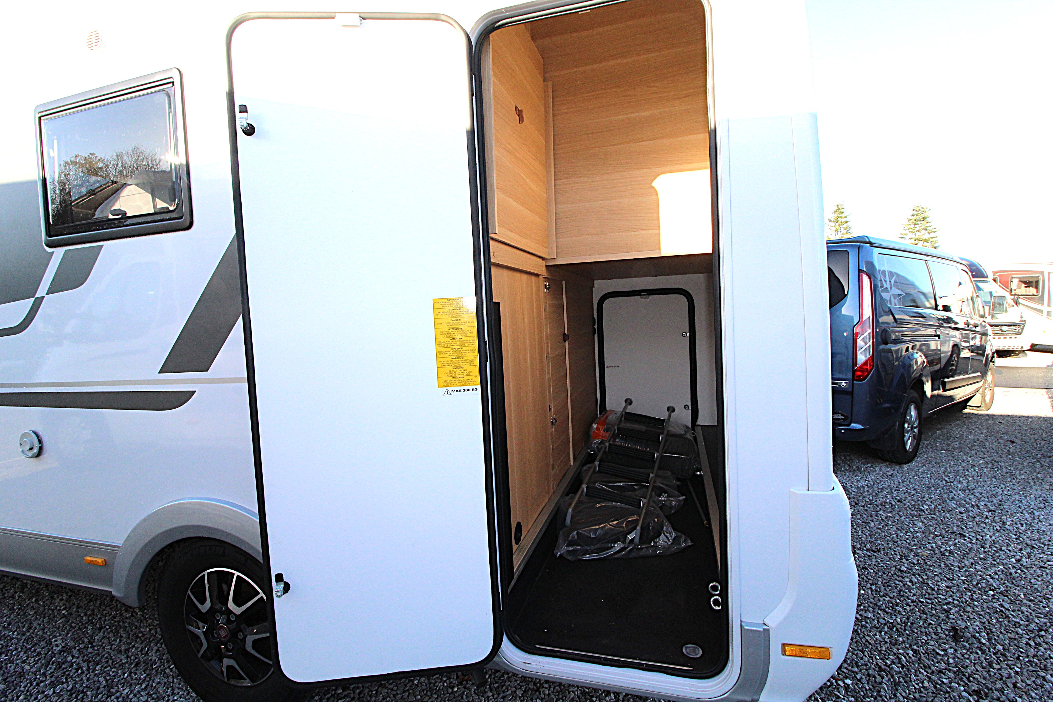 Additional features include, double door access to the garage area, Truma heating and hot water, loose fit carpets, premium upholstery, alloys, electric step, awning, alloys and rear view camera.