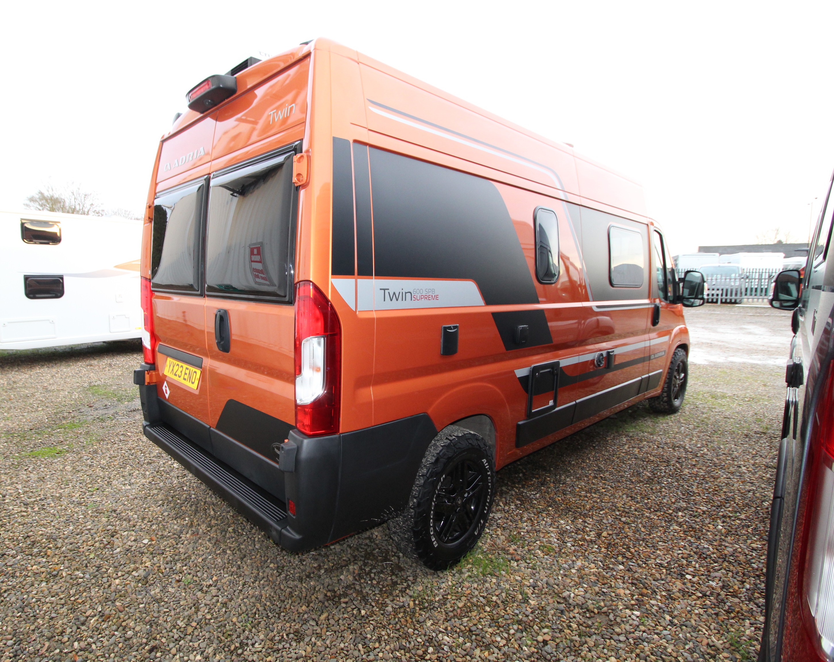 A rare opportunity to purchase this 2023 pre-loved, fully loaded, stunning Adria Twin Supreme 600 SPB, complete with just over 10,000 miles on the clock.