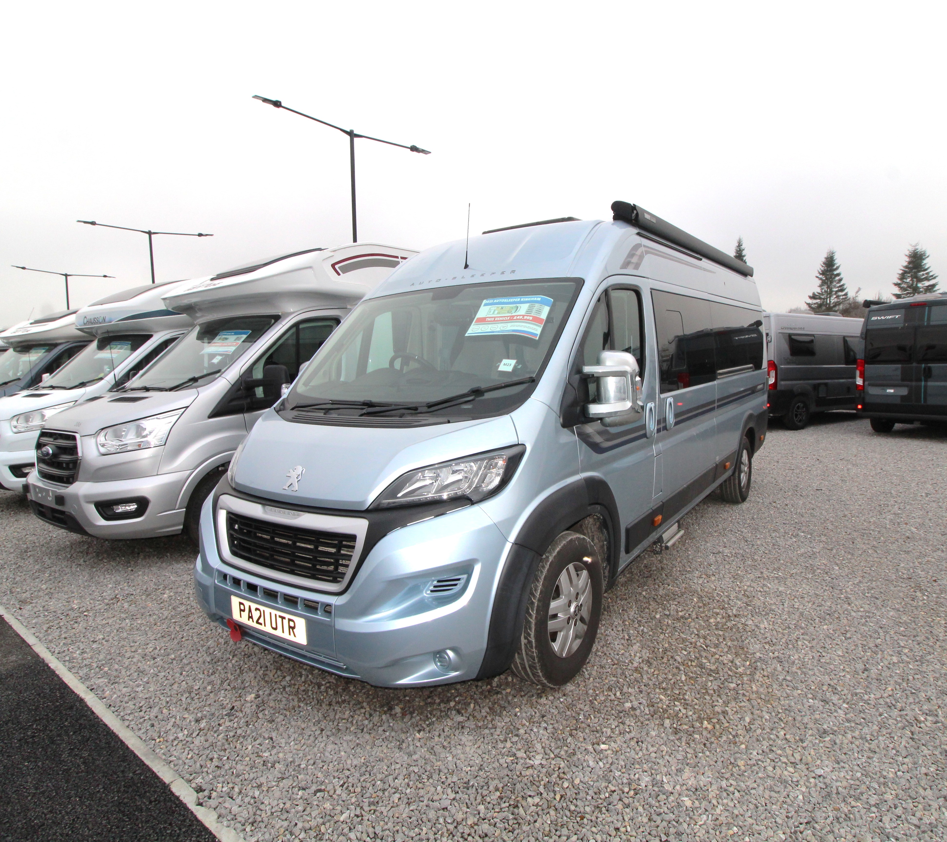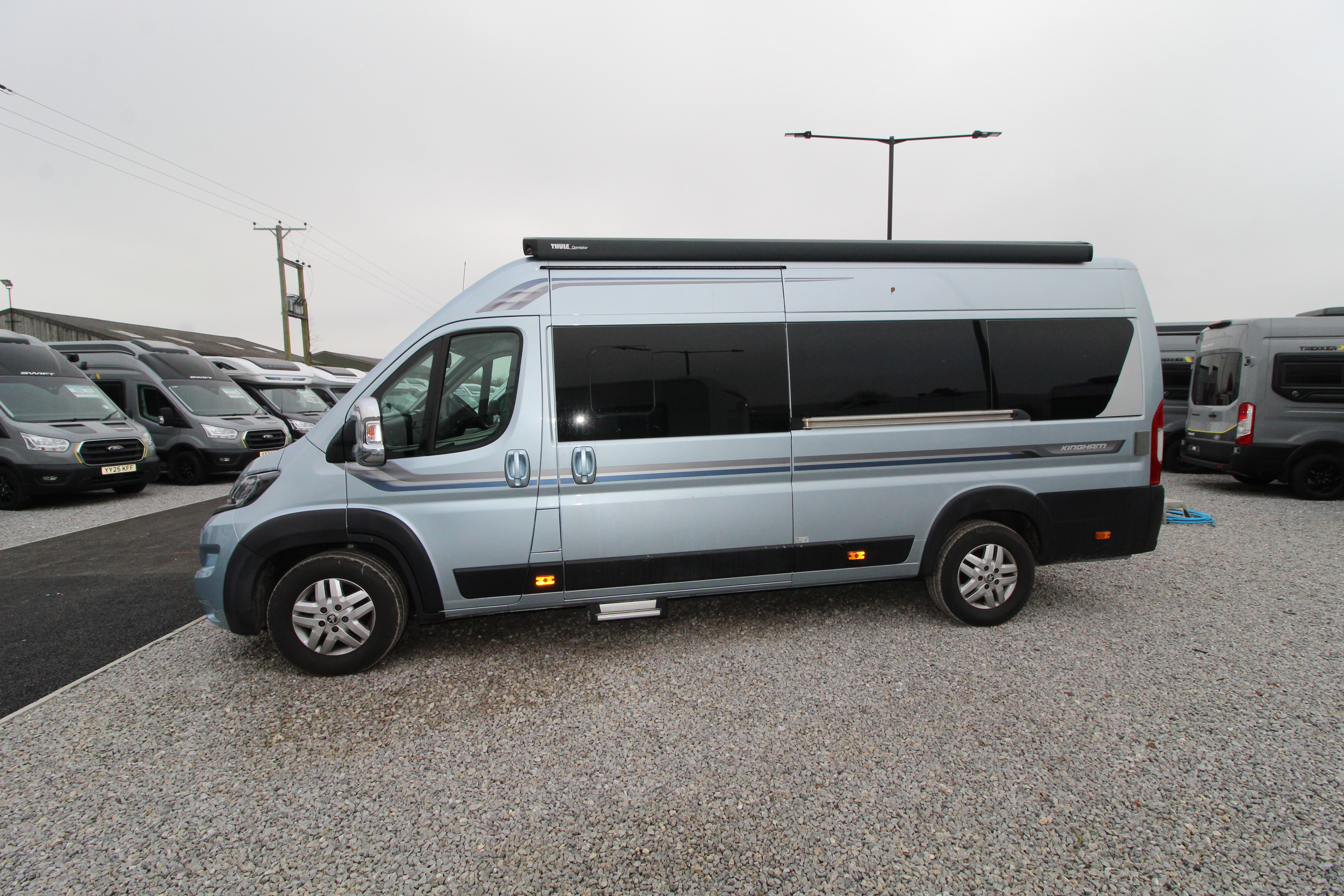 This pre-loved 2020 Auto-Sleeper Kingham is a premium 2/3-berth campervan built on the Peugeot Boxer chassis. This 2.2 litre, 6-speed manual drive vehicle arrived with 13,614 miles on the clock and presents a unique fixed French bed layout. Combining the convenience of a permanent bed with a sofa style lounge seat to the front, well fitted domestic style kitchen this van packs luxury and practicality together in a vehicle at 6.36m long.