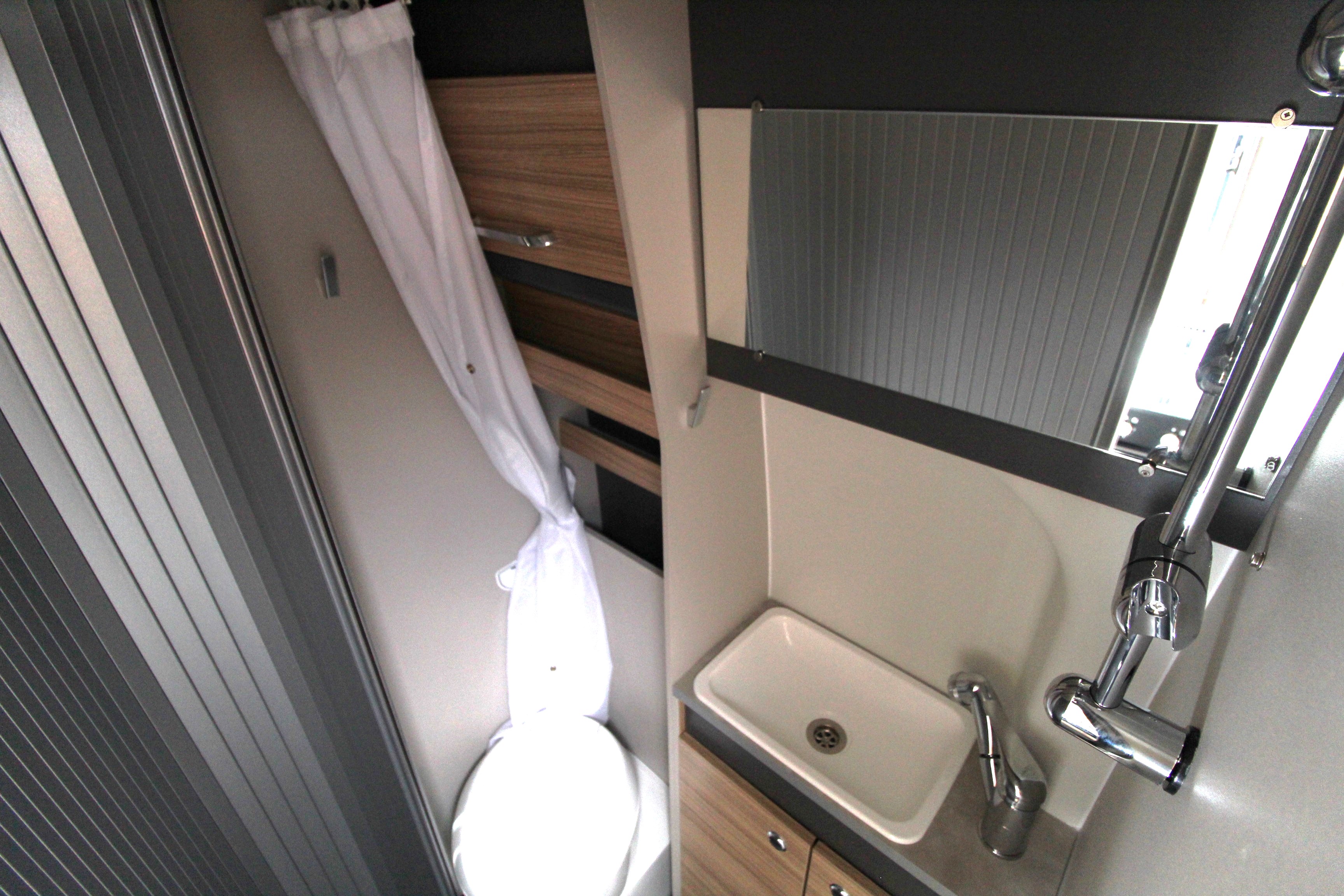 Refresh in the space-saving combination washroom with the onboard Ecocamel shower, wash basin and cassette toilet,