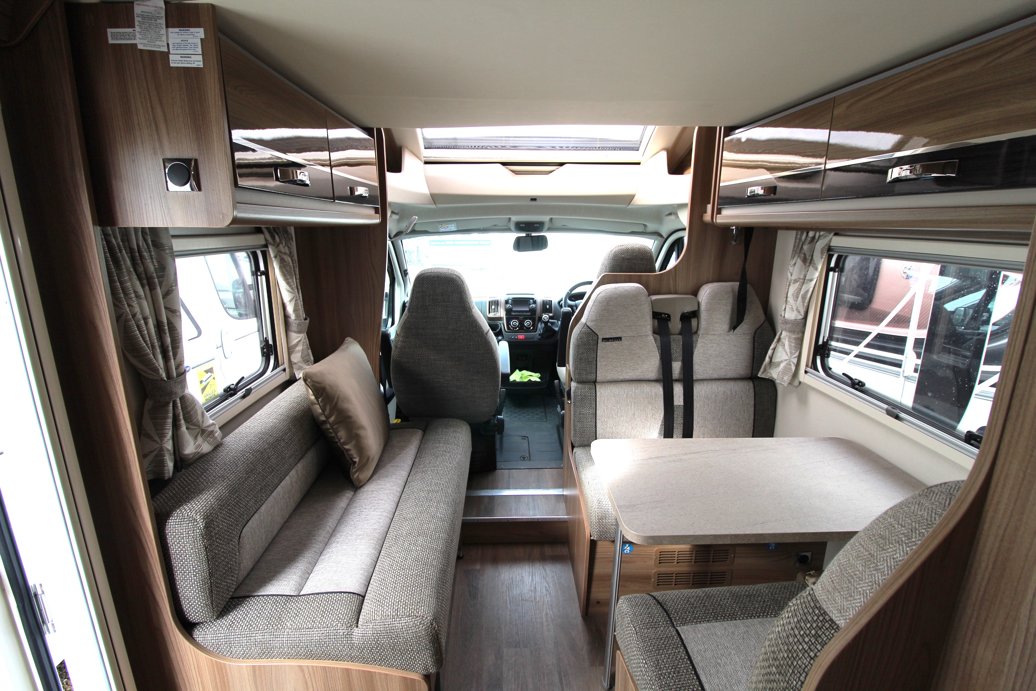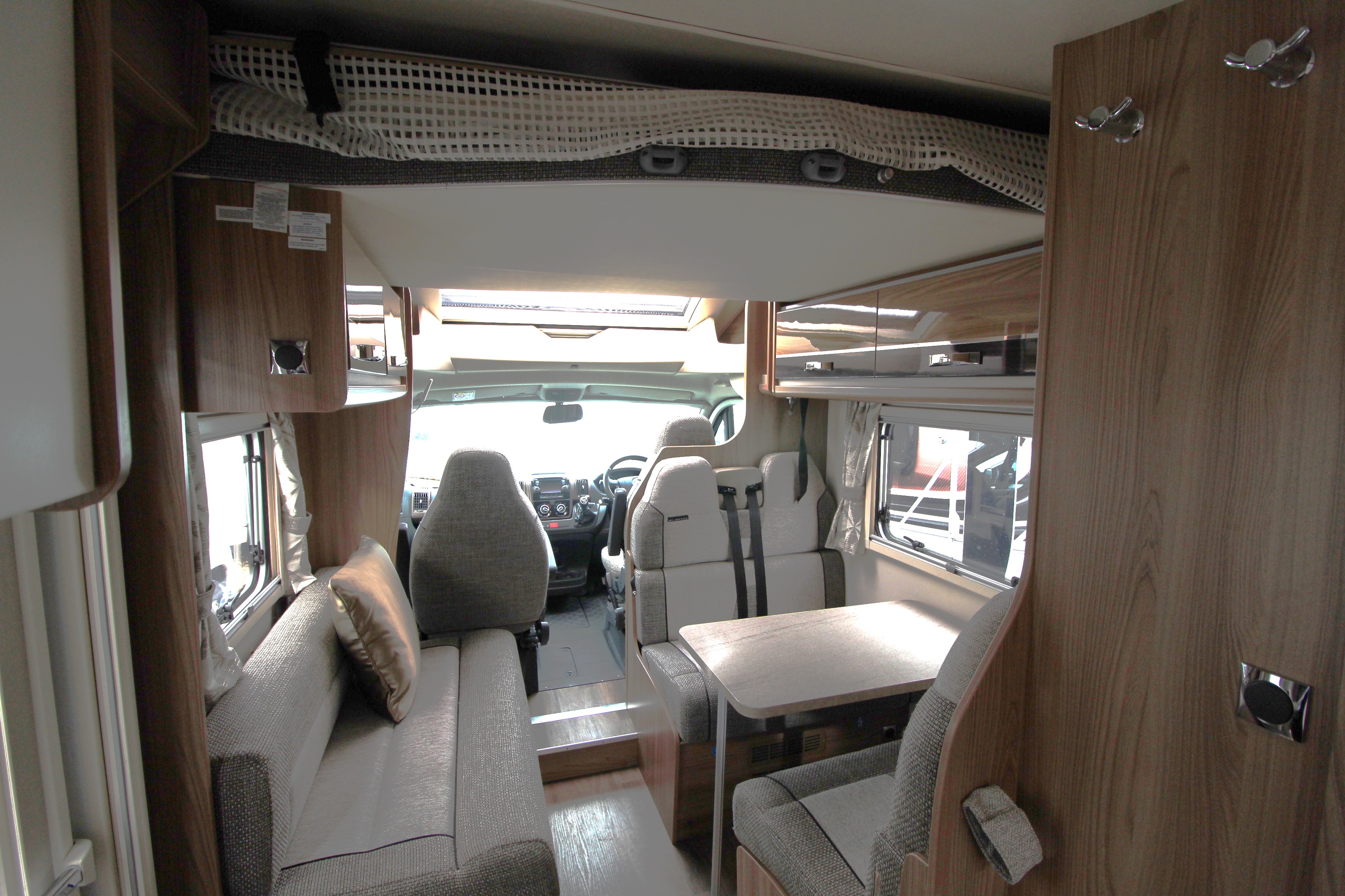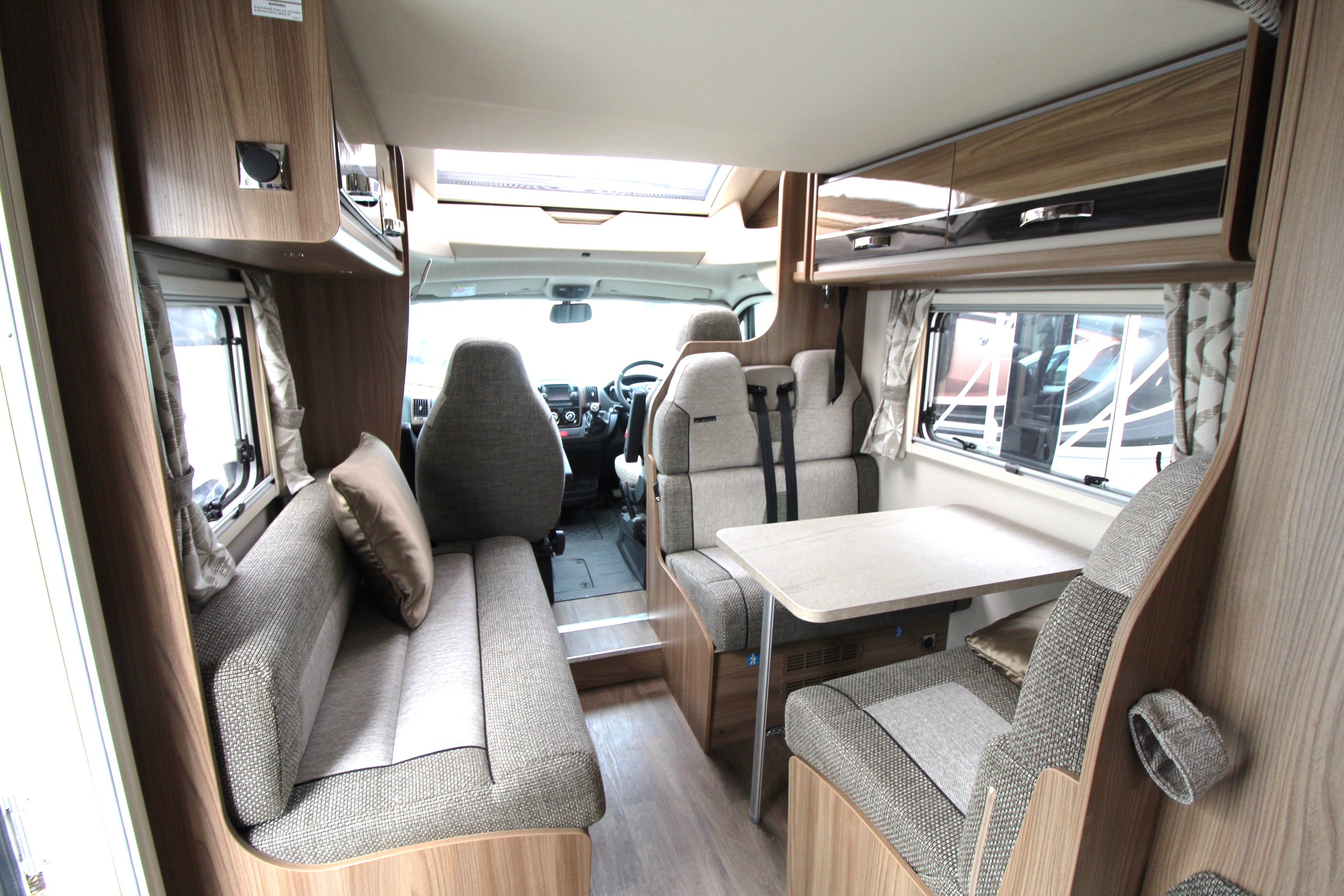 In excellent condition throughout a generous front lounge area with forward, rear facing and side bench cab seats around a dining table to complement a spacious rear lounge area, the family have plenty of options to relax or play games. Over the front lounge area you will find a drop down double bed,