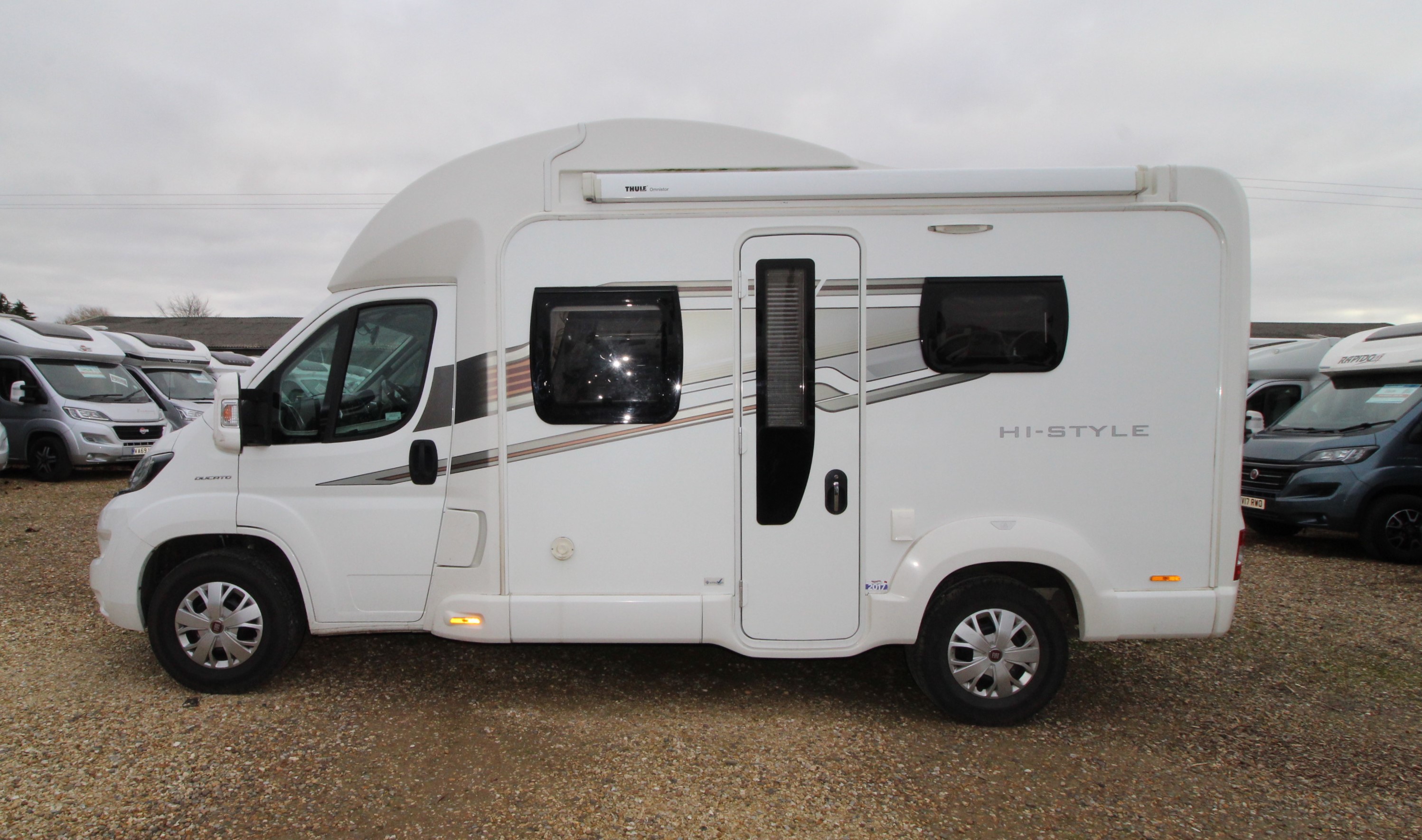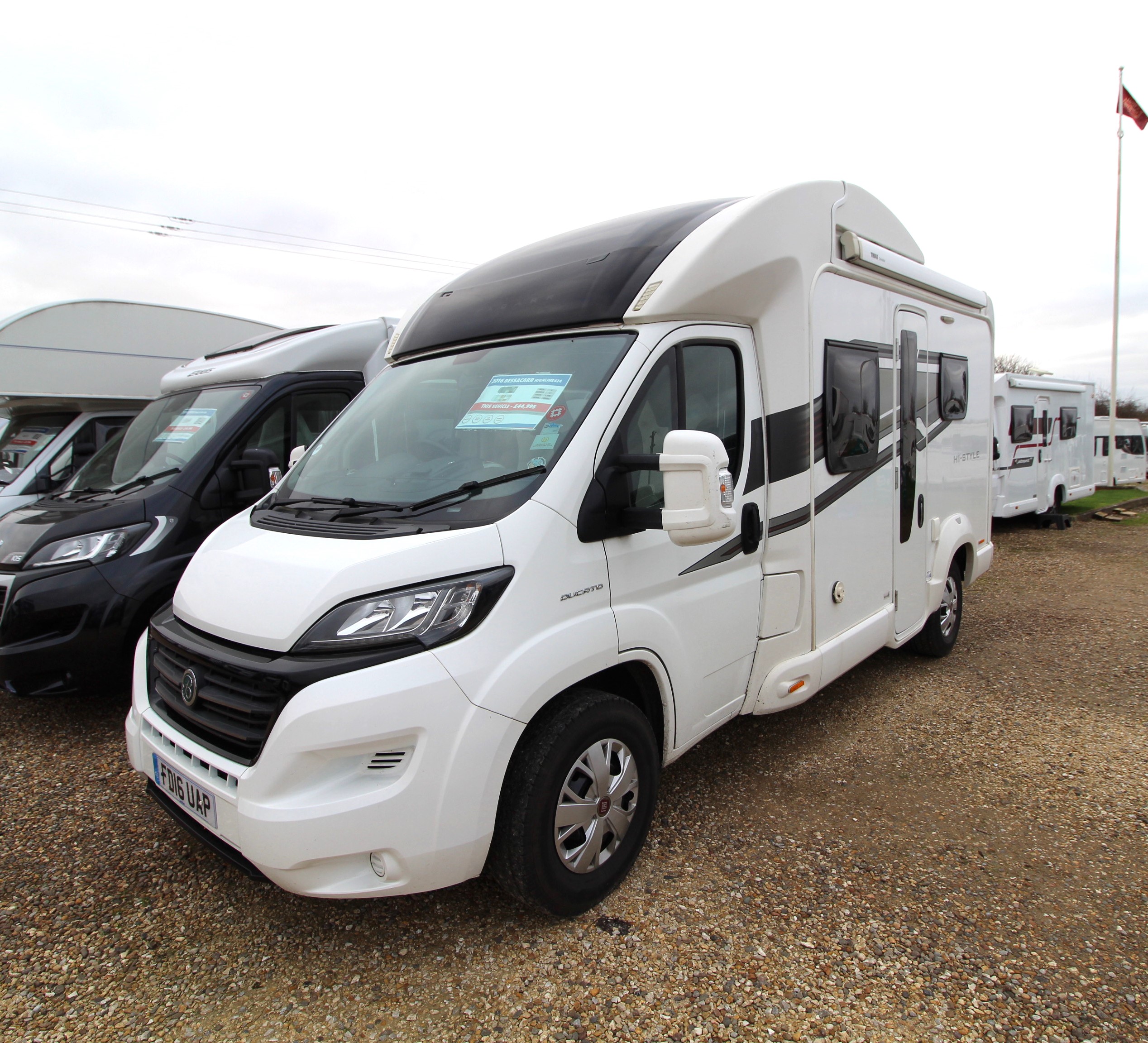 Step inside this pre-loved 2016 Bessacarr Hi-Line 424 four berth motorhome offering a spacious lounge area and drop down double bed. Built on a Fiat chassis this compact (5.99m) motorhome has a 2.3litre, 130 MJT Auto transmission drive and arrived with 21,736 miles on the clock. Four travelling seats makes it ideal for the touring couple or small family.