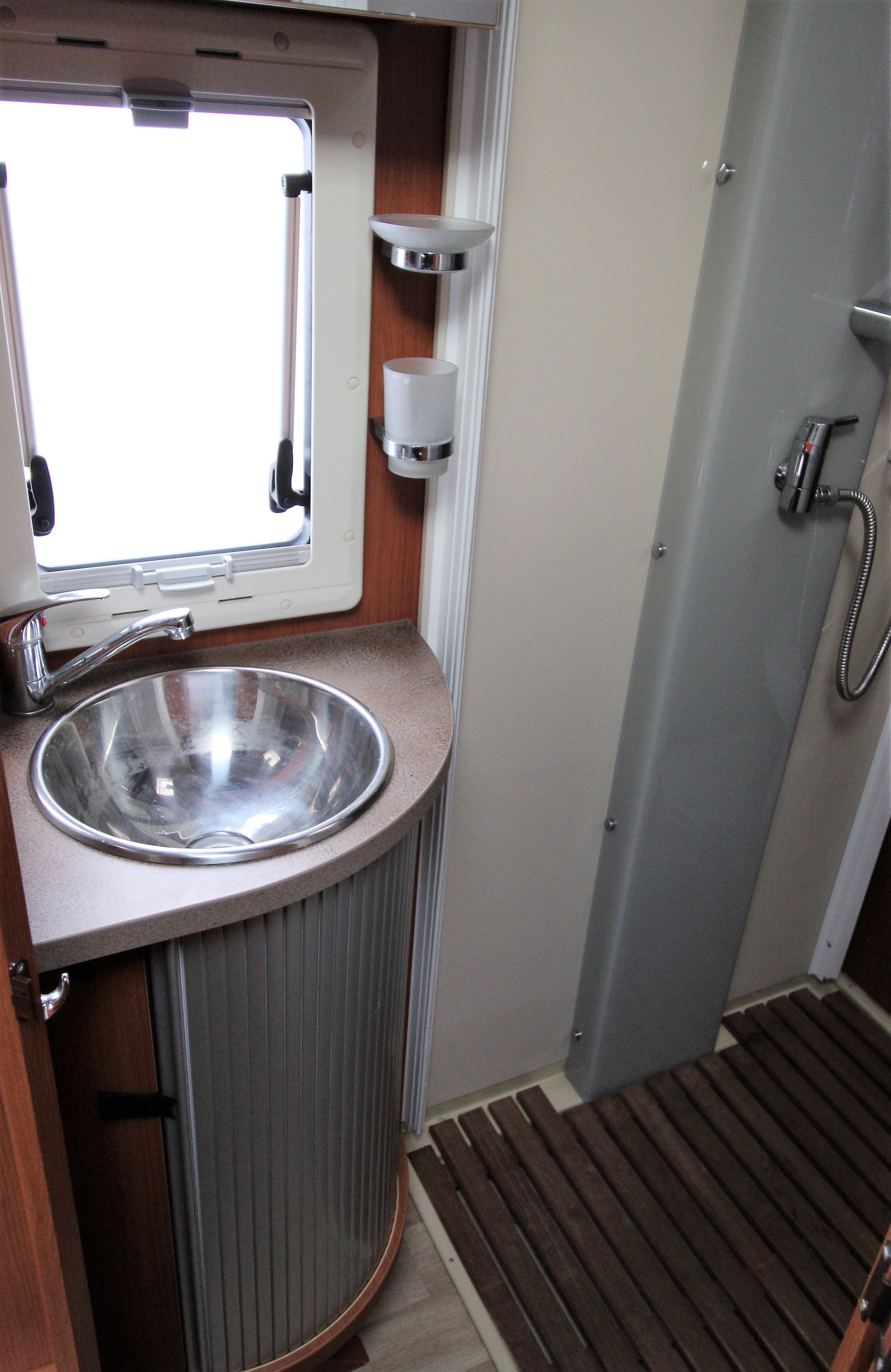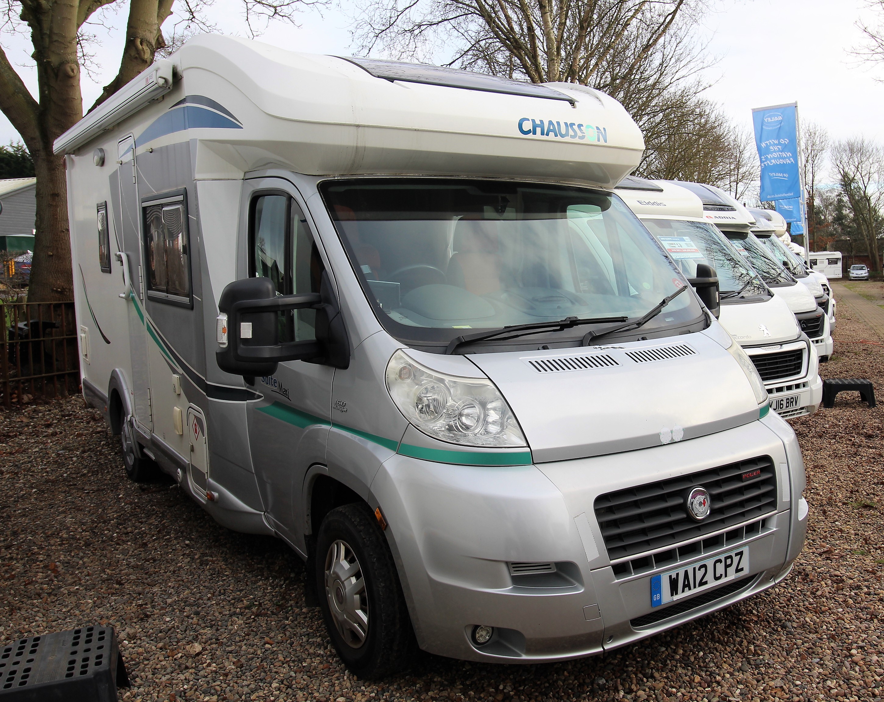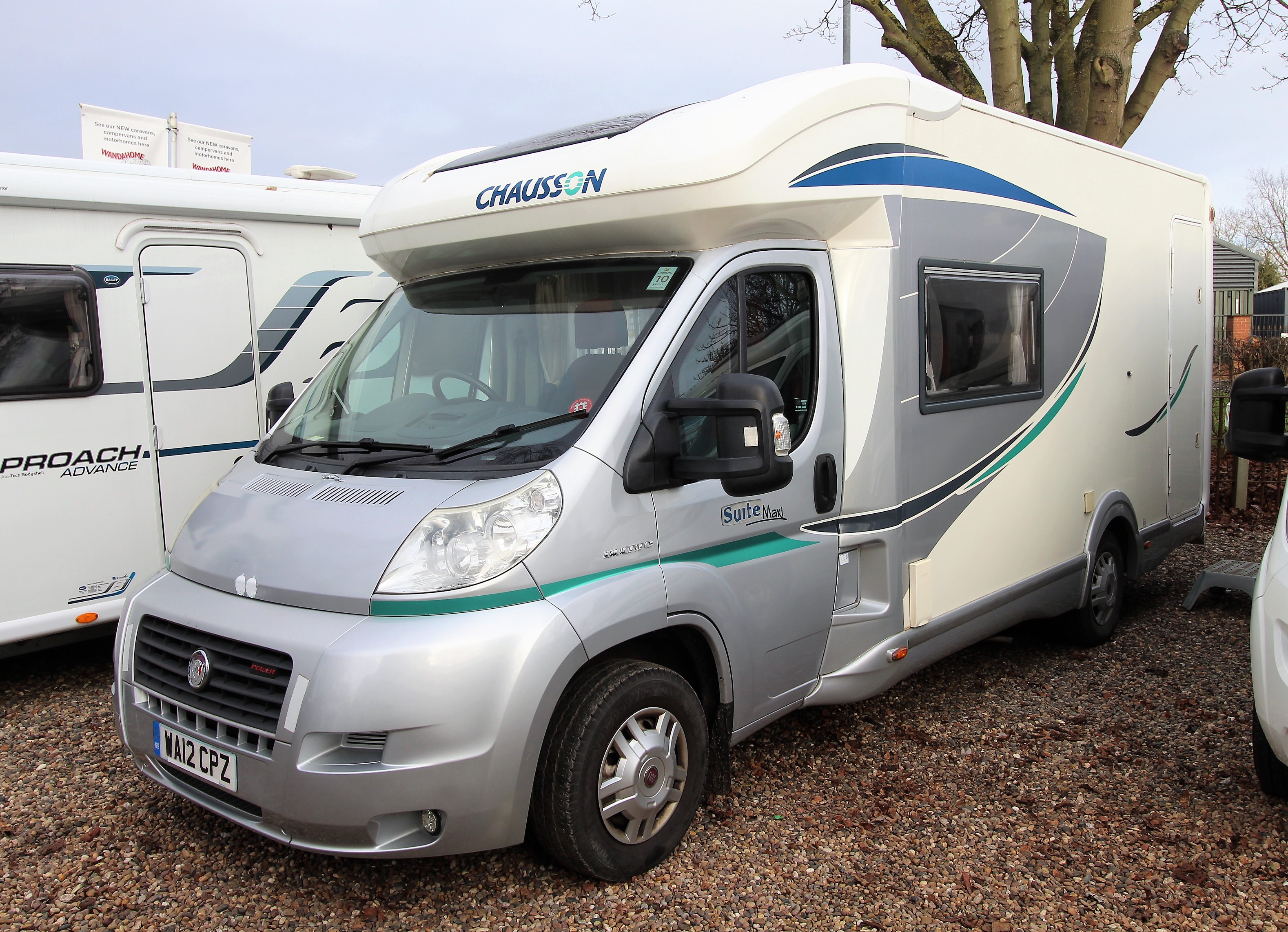 Wandahome is delighted to offer you this pre-loved 2 berth 2012 Chausson Maxi Suite. Offering a pleasant and spacious living area with a fixed sliding table, a lovely space to sit back and relax or entertain guests. Swivel cab seats open up the area whilst still having room to move around. Set back from the seating area is the well fitted kitchen to t features all you need to prepare your meals. Complete with a hob, oven, sink, large fridge freezer, drawers and pull our larder. Glass tops to cover the hob and sink. To the rear there is a spacious washroom with shower, sink unit and shelving.