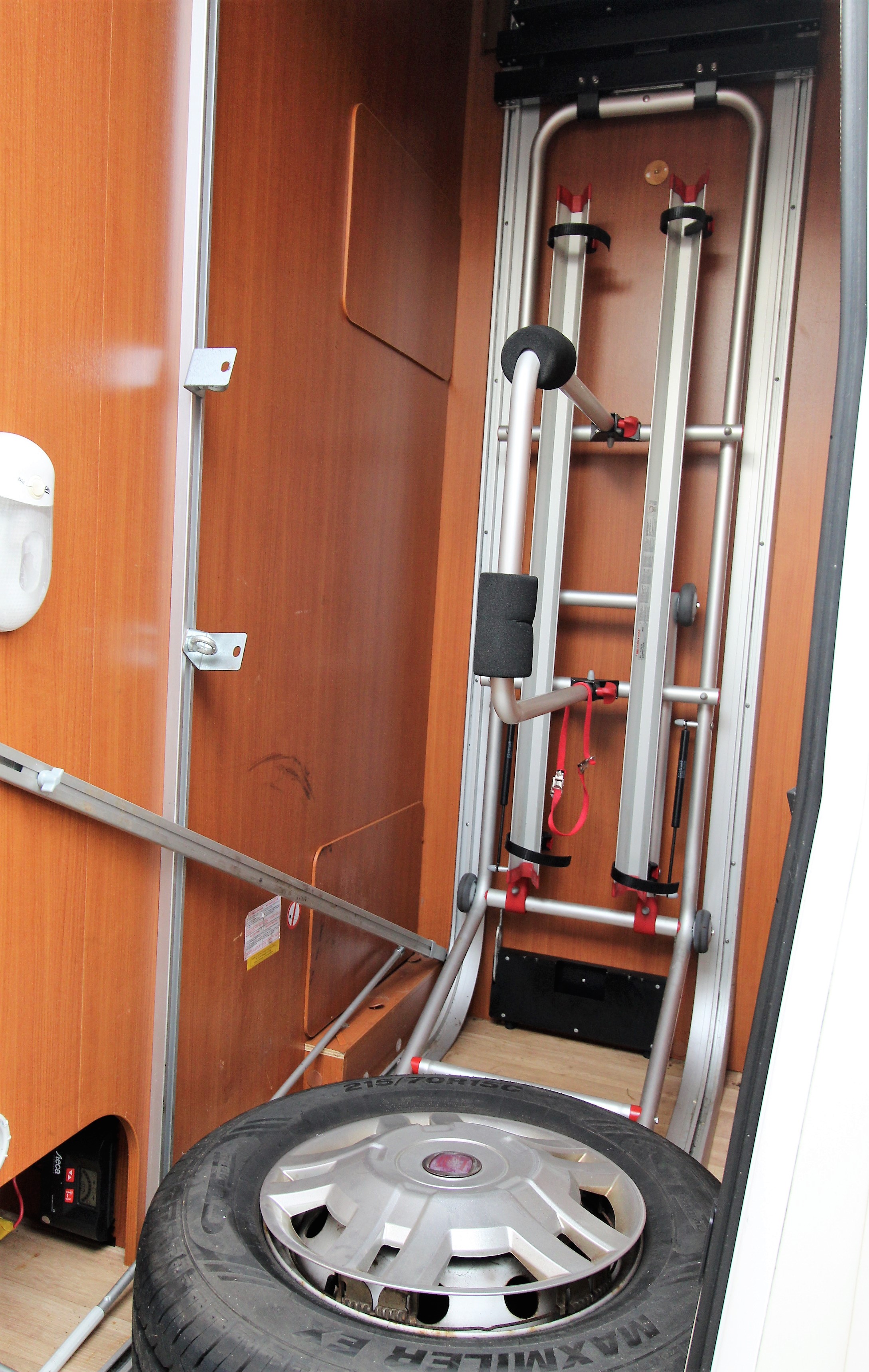 On a night time simply lower the bed from the ceiling and you have the luxury of a fixed bed that takes up no extra floor space. To the rear of the motorhome you will find a large storage area, perfect for your accessories.