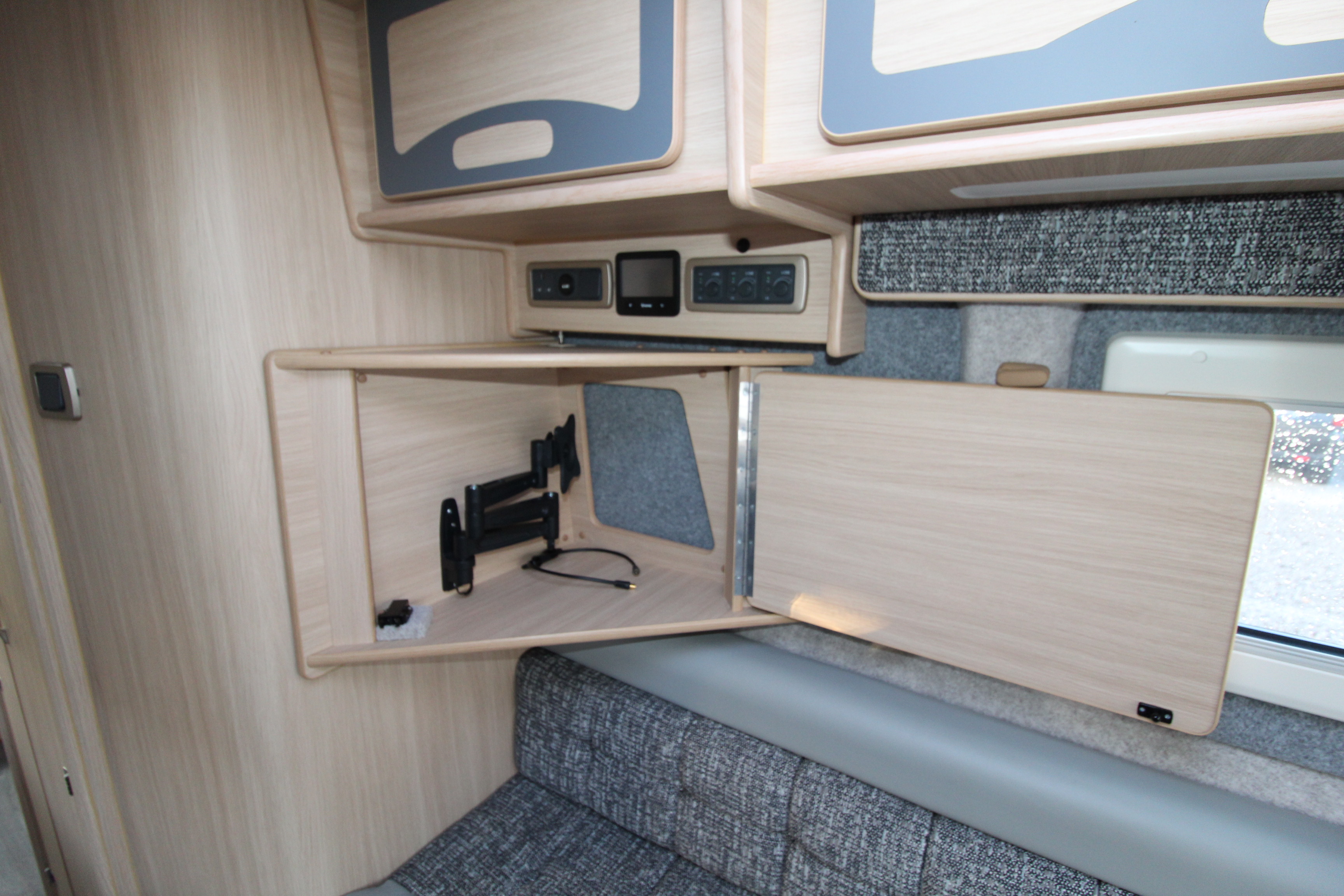 Ideal for the individual explorer or touring couple who appreciate space, the rear lounge converts into a double bed at the end of a long day. A concealed tv bracket in a cabinet is ready for you to add your own tv then you can relax and catch up on all your favourite channels.