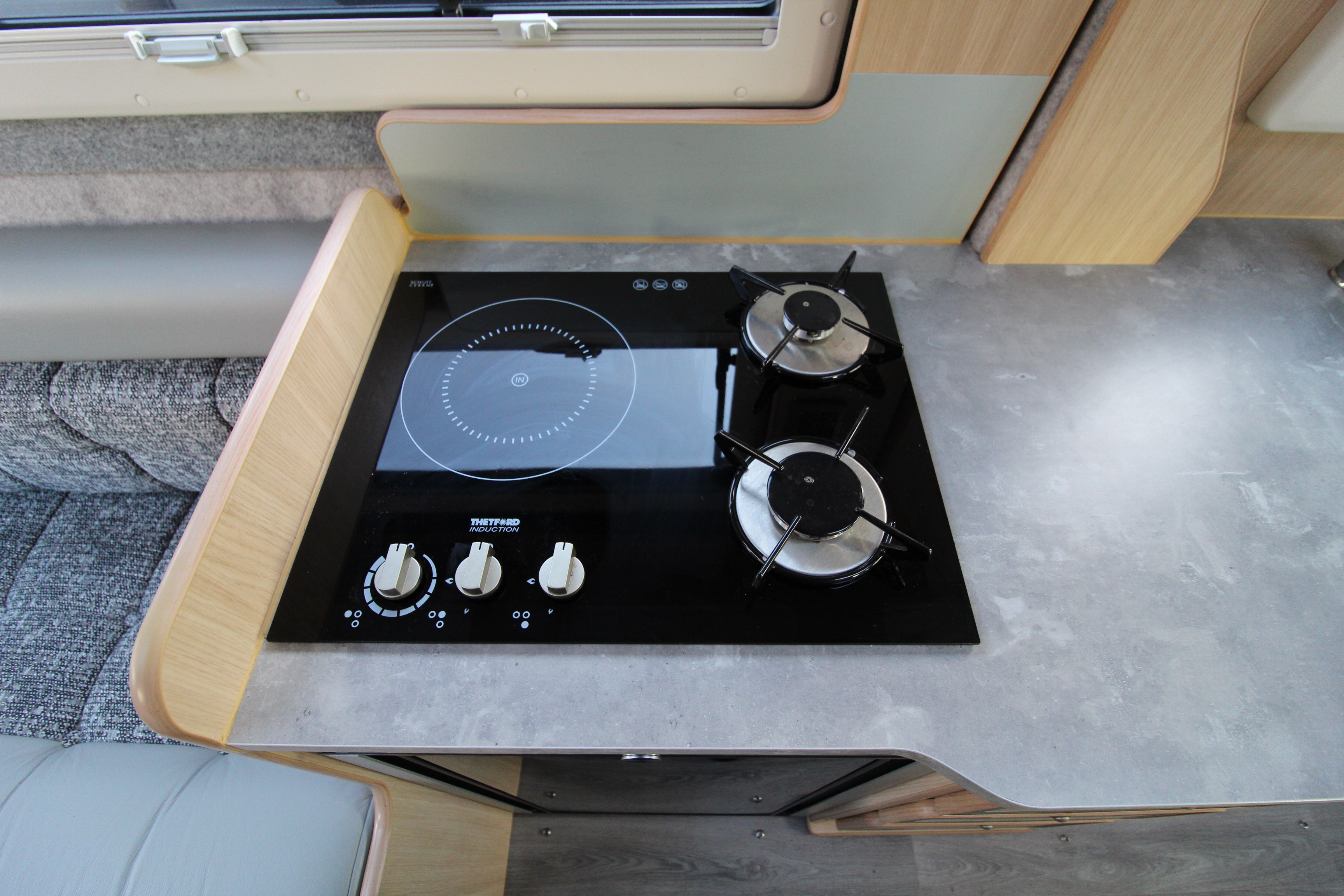 This premium vehicle has additional features including, rear view camera, leisure gas fill system, awning, tow bar, combi oven and grill, dual fuel hob with 2 gas burners and one induction hob, undercounter fridge and a combi washroom with shower facility.
