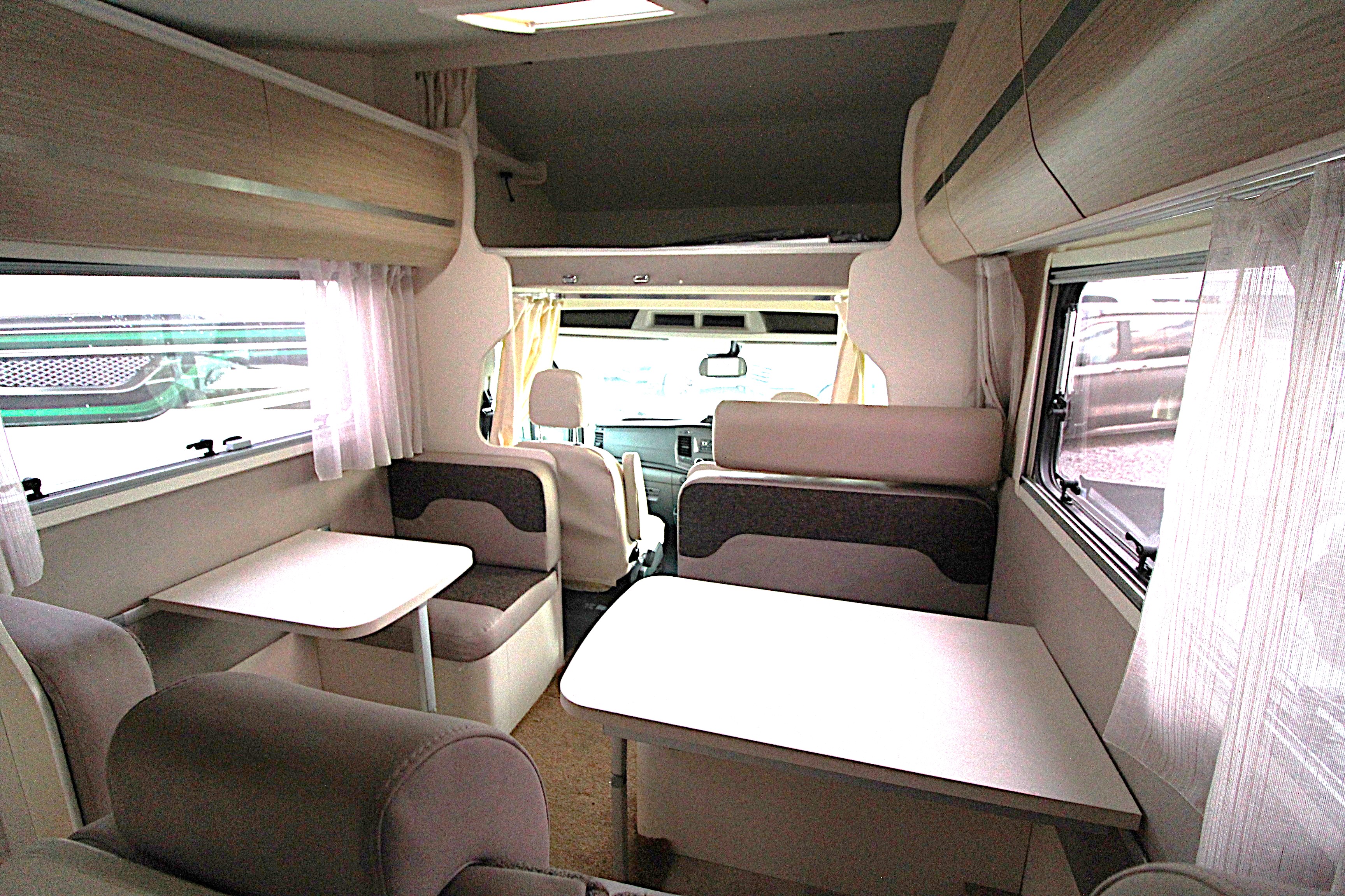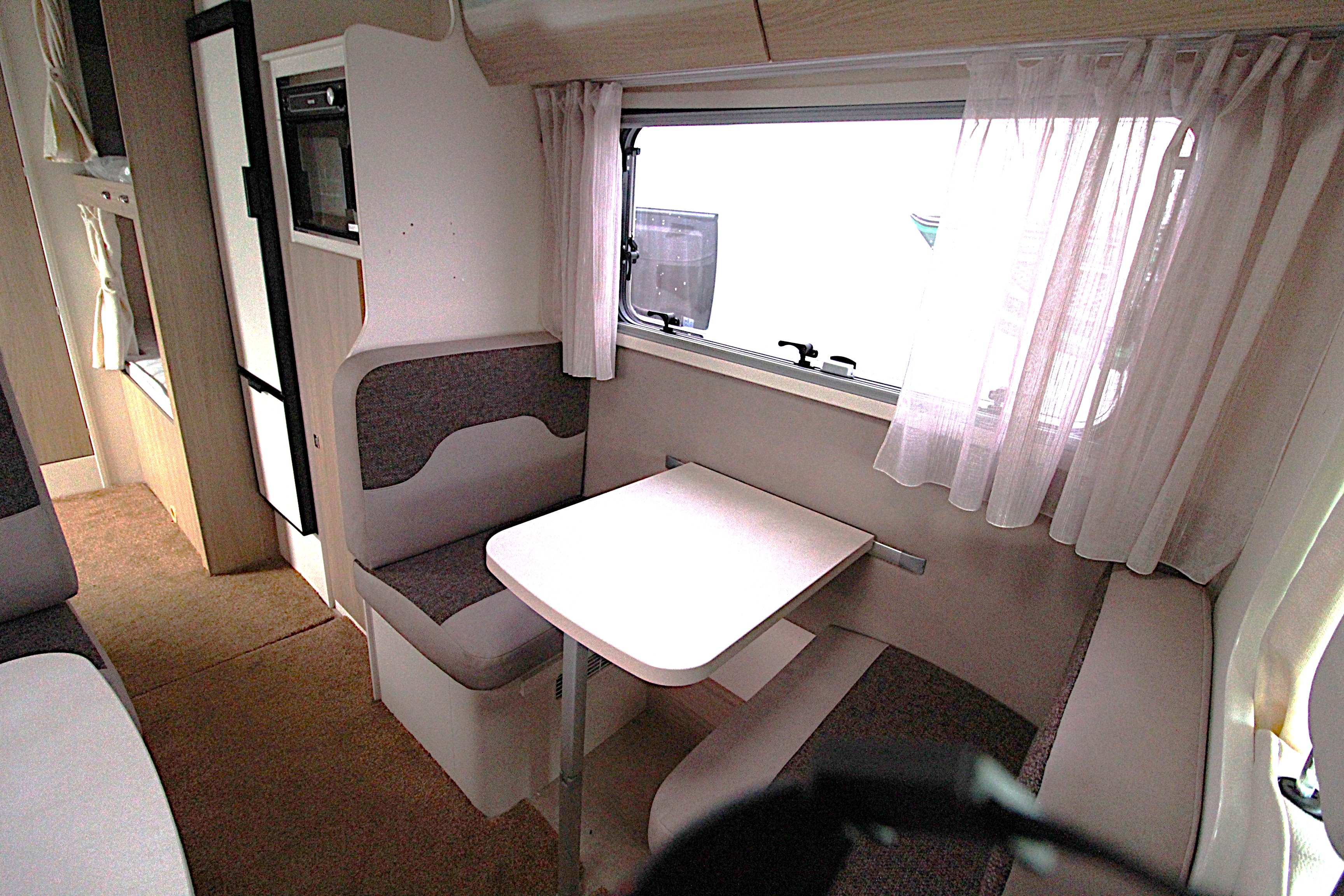 Moving forwards to the seating area you have a forward and rear facing double dinette area making it the ideal area for dining, games tables and entertaining. This area converts into a double and a small single bed. An additional sleeping area is the massive over-cab double bed.