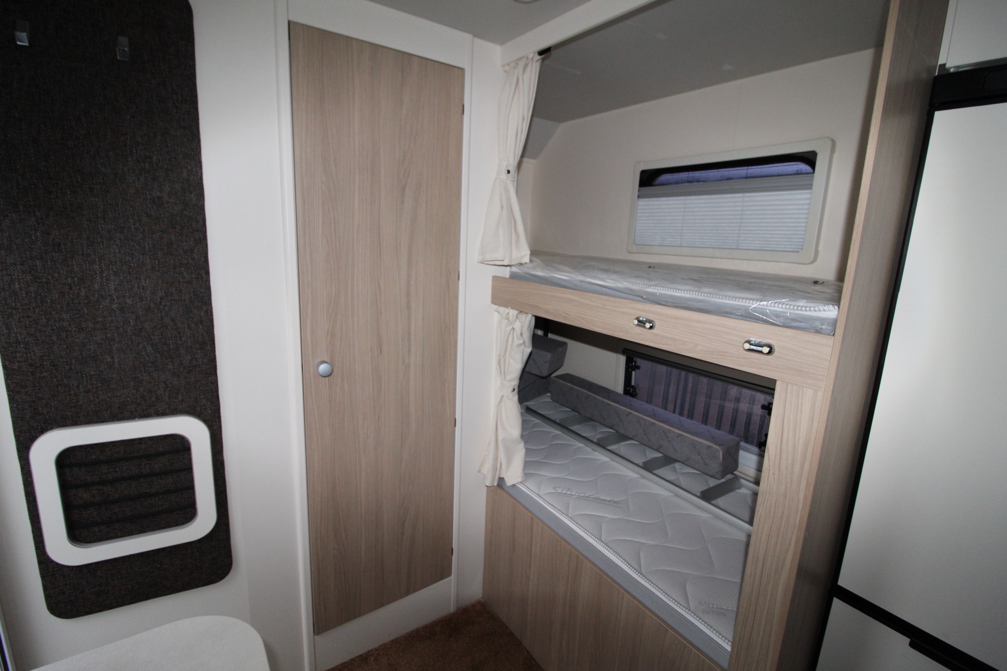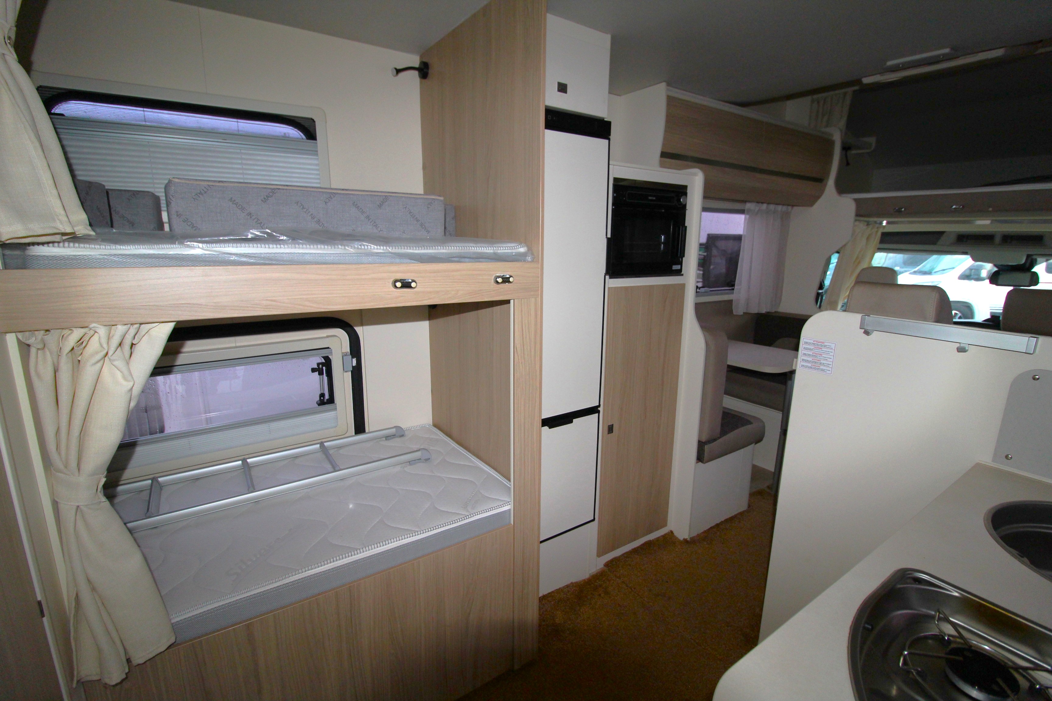 Rear fixed bunks can be used as they are or you may may want to take advantage of the bottom fold up bunk that could be used to create a large garage space for extra gear and bikes, with the benefit of external access.