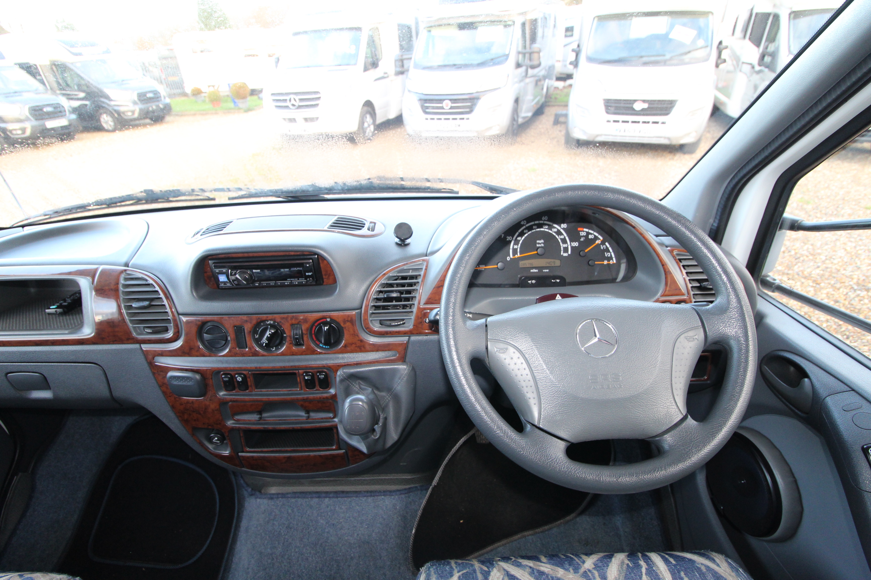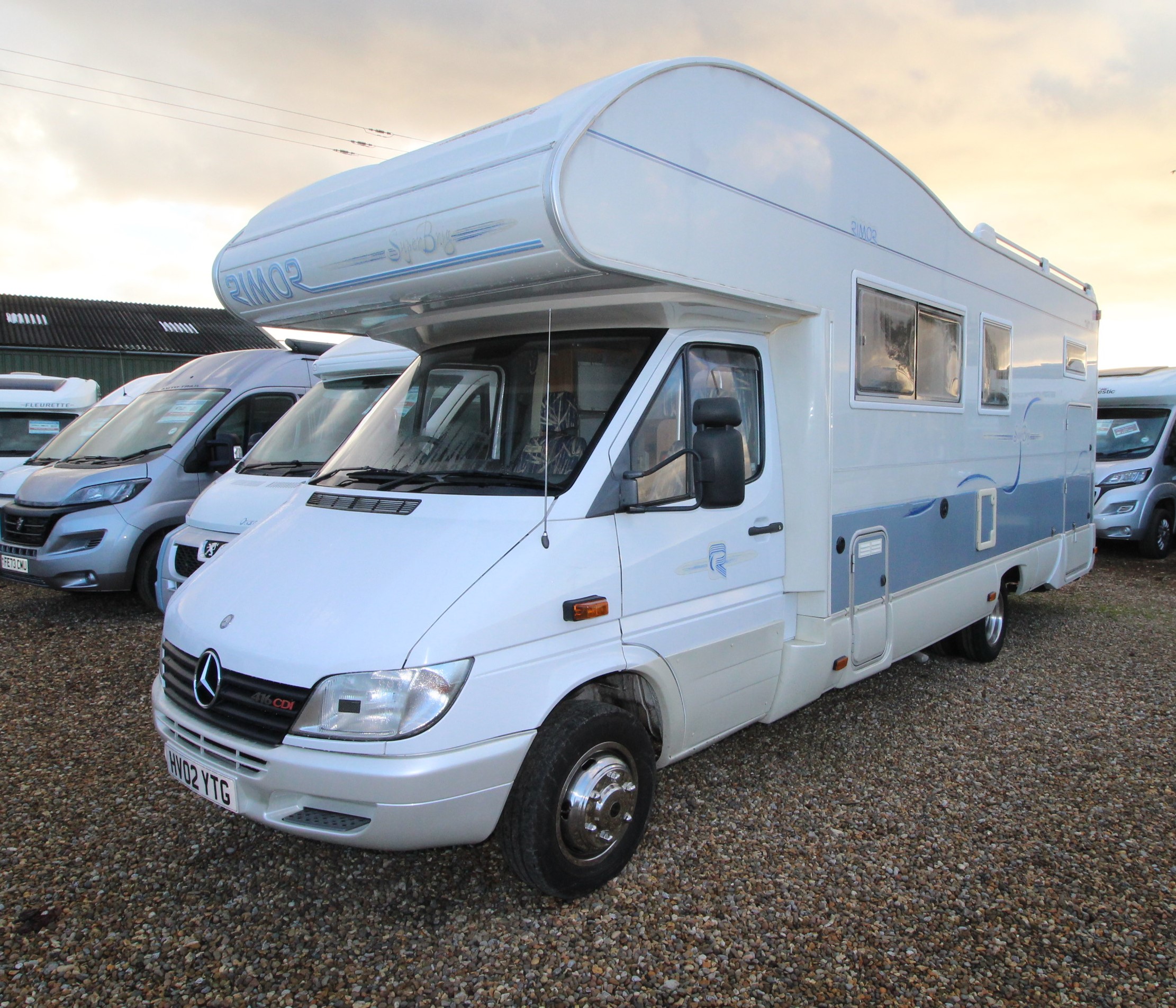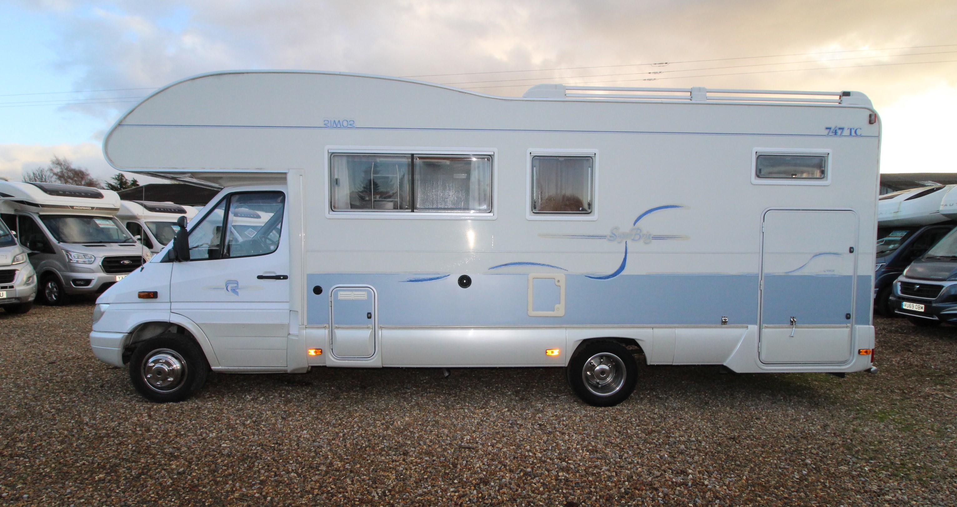 Step inside this fantastic pre-loved 2002 Rimor Suprerbrig 747 TC six berth motorhome based on a Mercedes Sprinter with a 2.7 Diesel, 160 BHP, manual drive cab. Boasting ‘100% MOT Pass’ rating and with 86,000 miles on the clock this vehicle has been very well cared for by its previous owners. Offering an overcab double bed, rear fixed double bed and double bench seating area that converts to sleep 2, this motorhome is the perfect family motorhome.