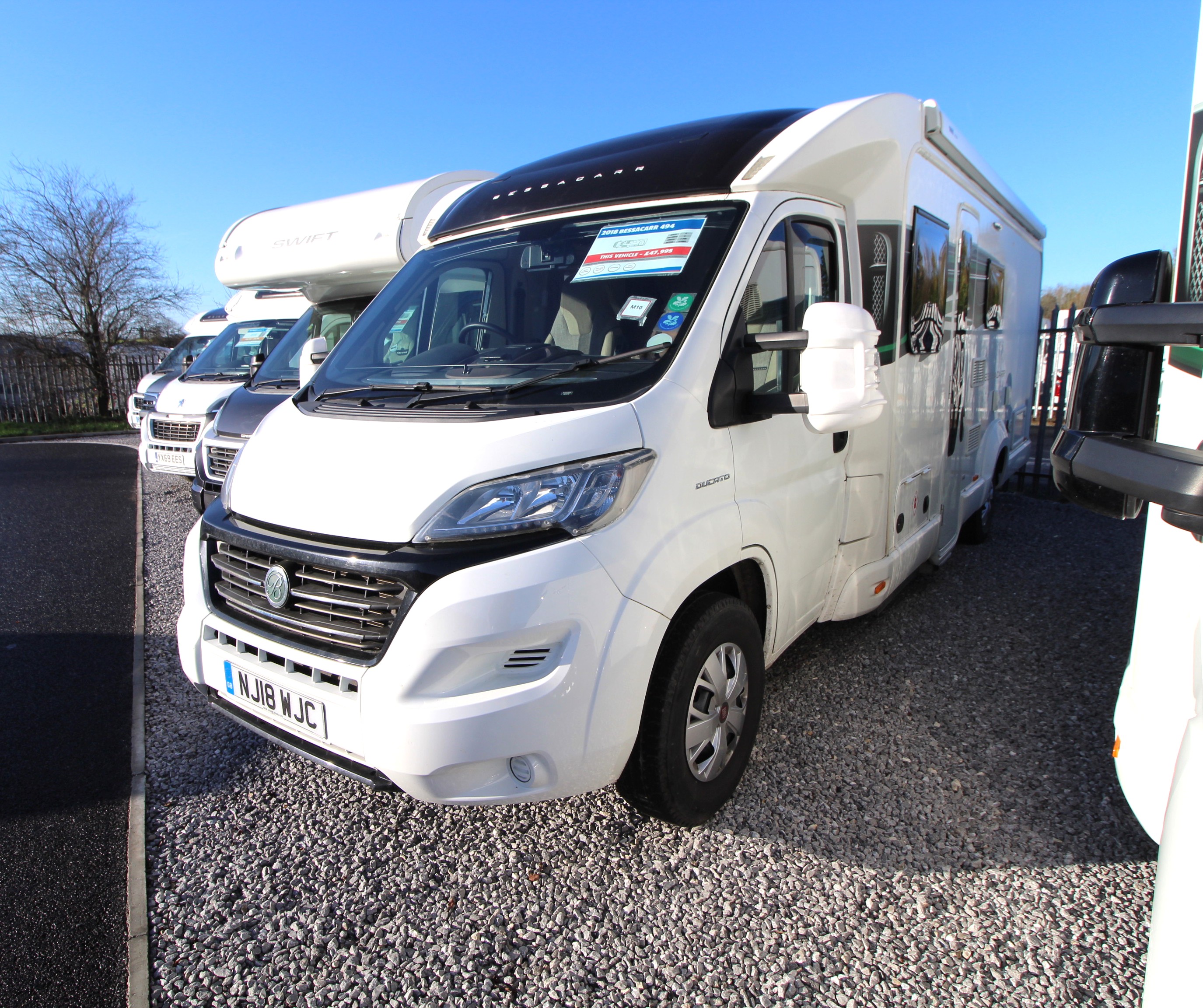 This pre-loved 2018 Swift Bessacarr 494 Luxe is a luxury four-berth motorhome with four-seatbelts and is known for its blend of style and practicality. Featuring spacious and flexible accommodation including the ever popular rear transverse island bed.