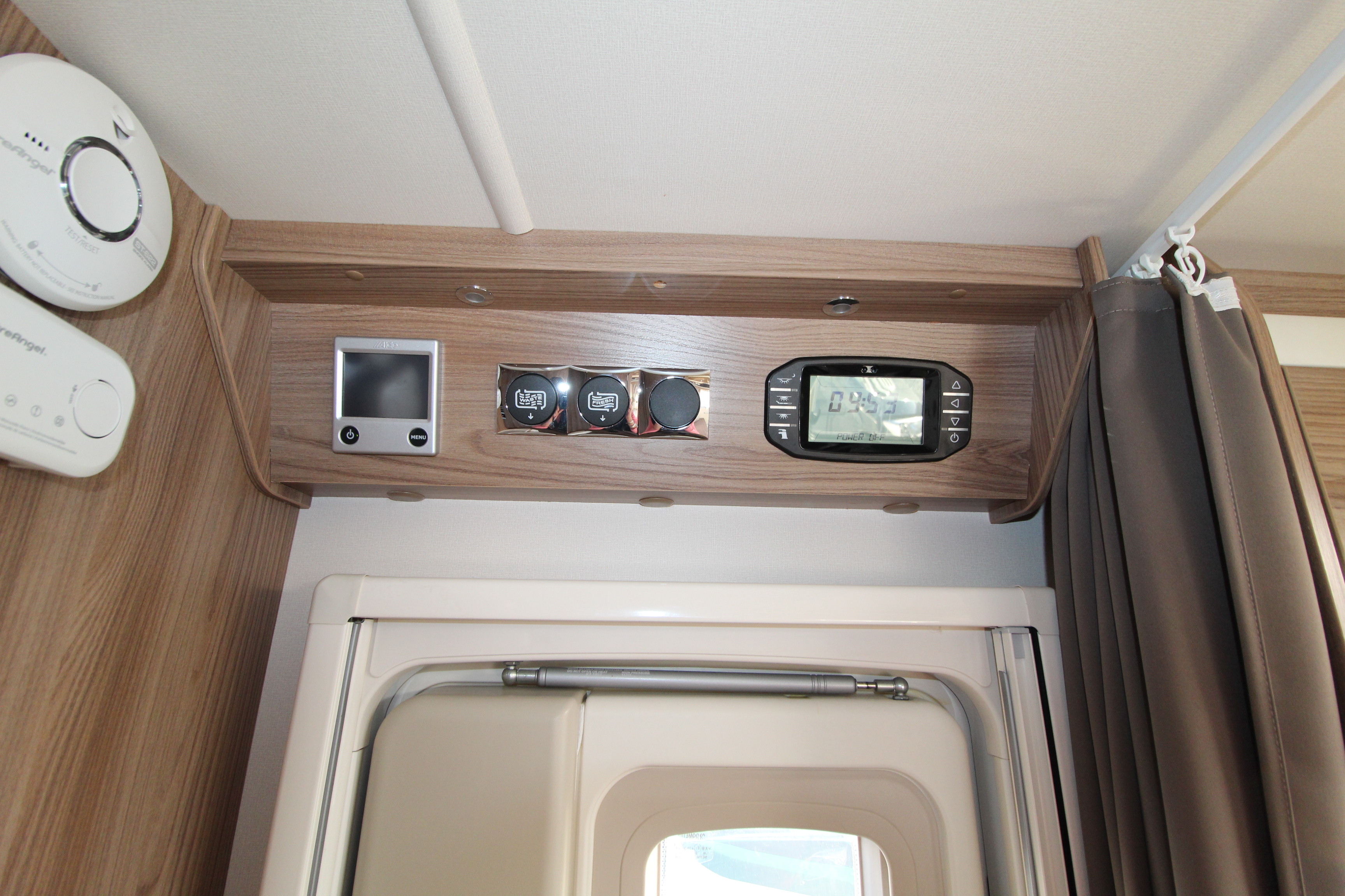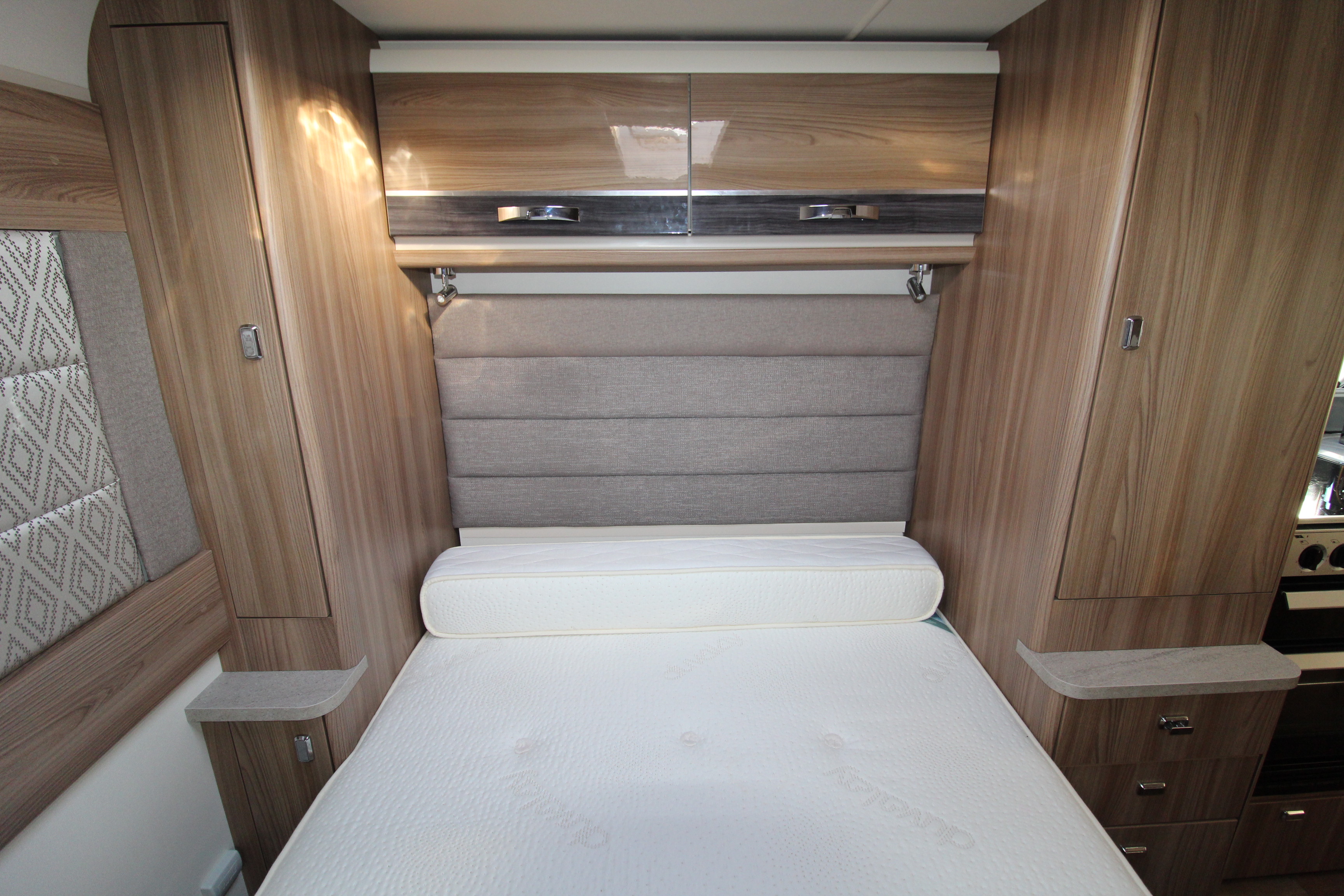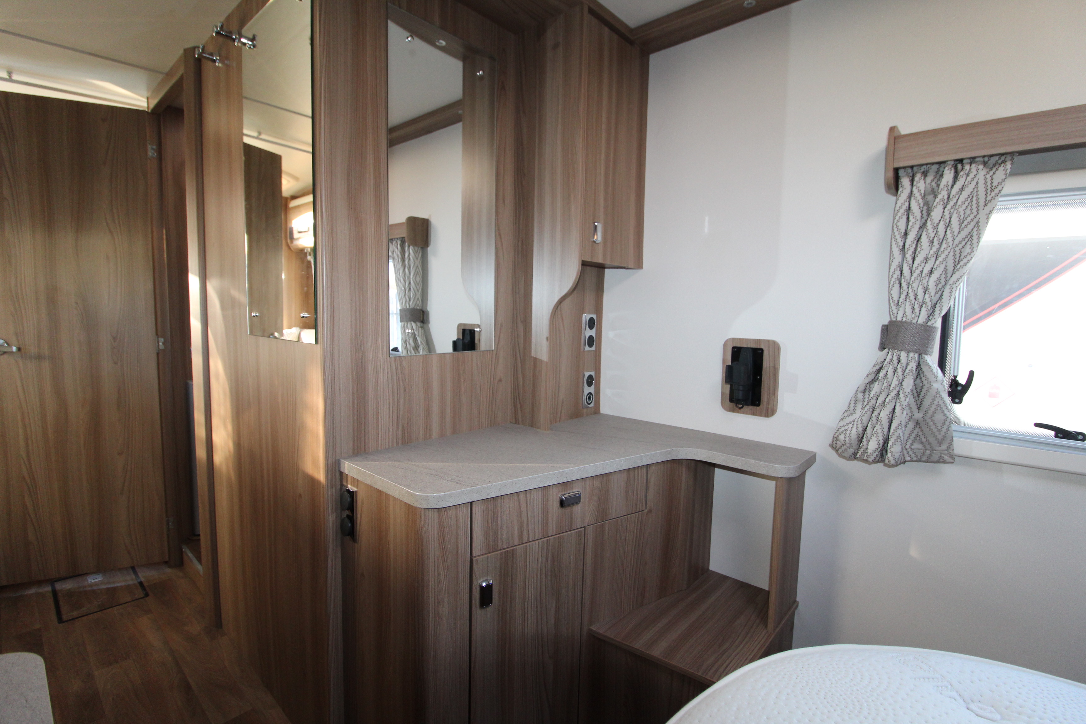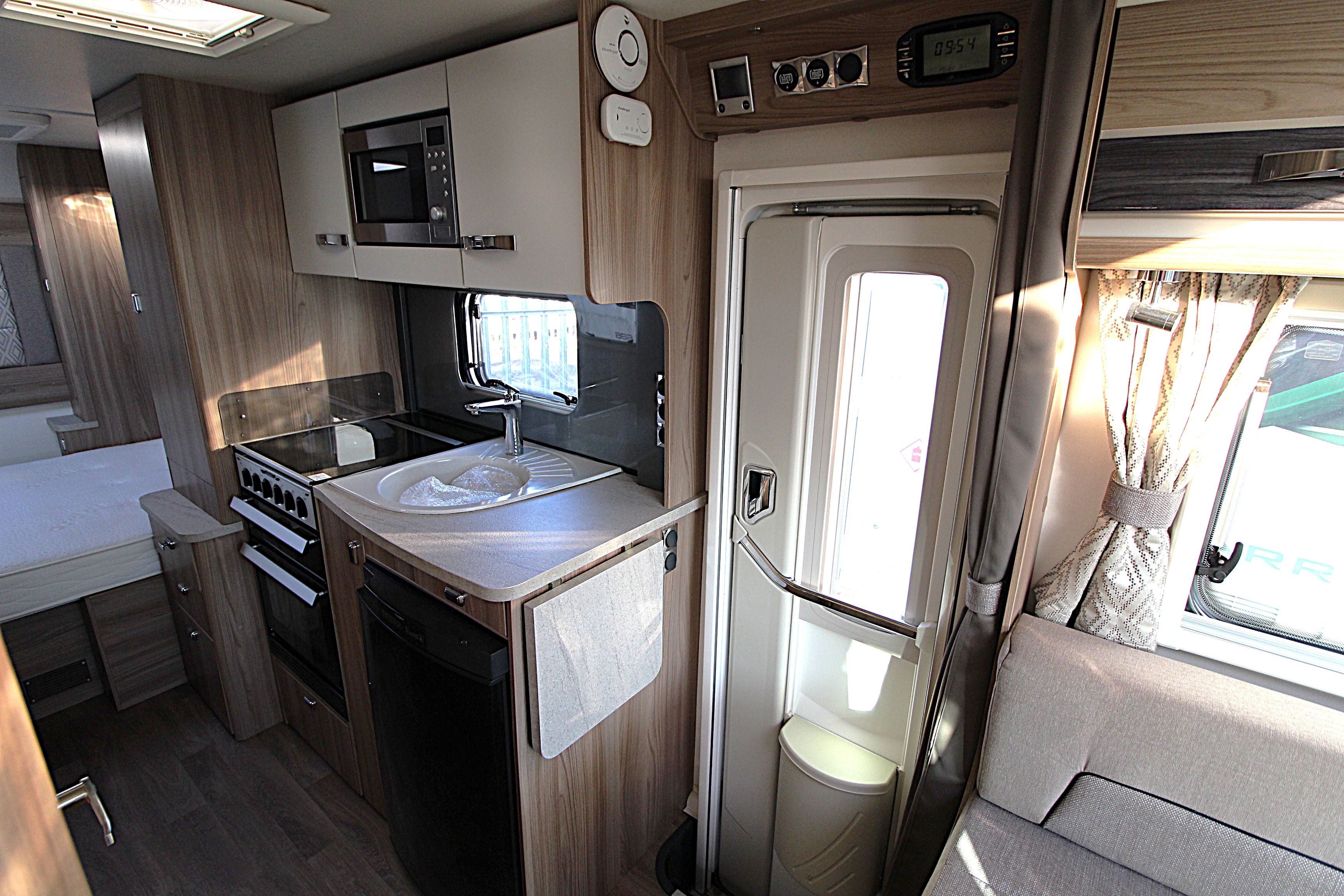 Additional features include twin side and forward facing bench seats to the lounge area, tv aerial points and brackets to the main living area and bedroom area, cab and window blinds, external electric and gas points.