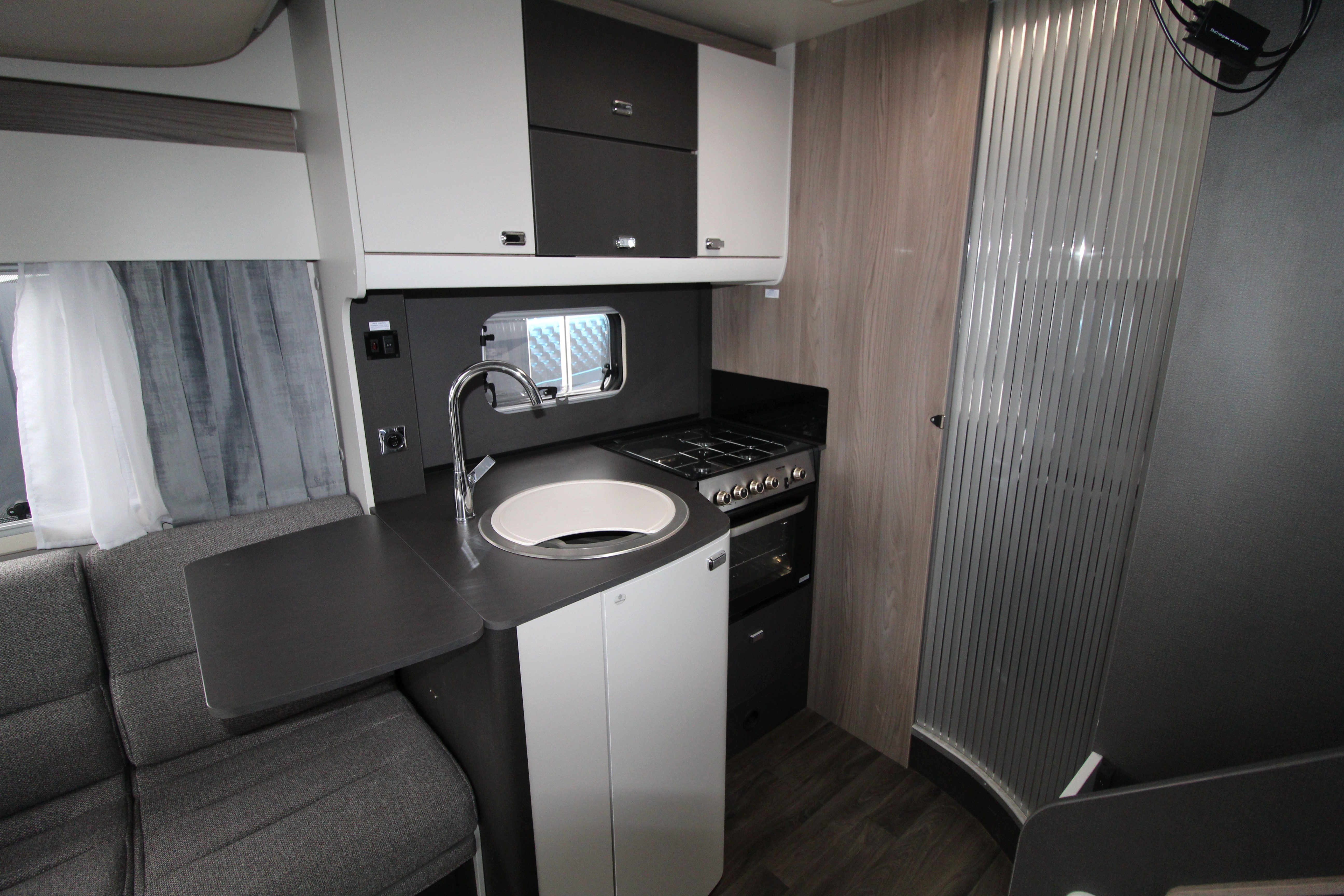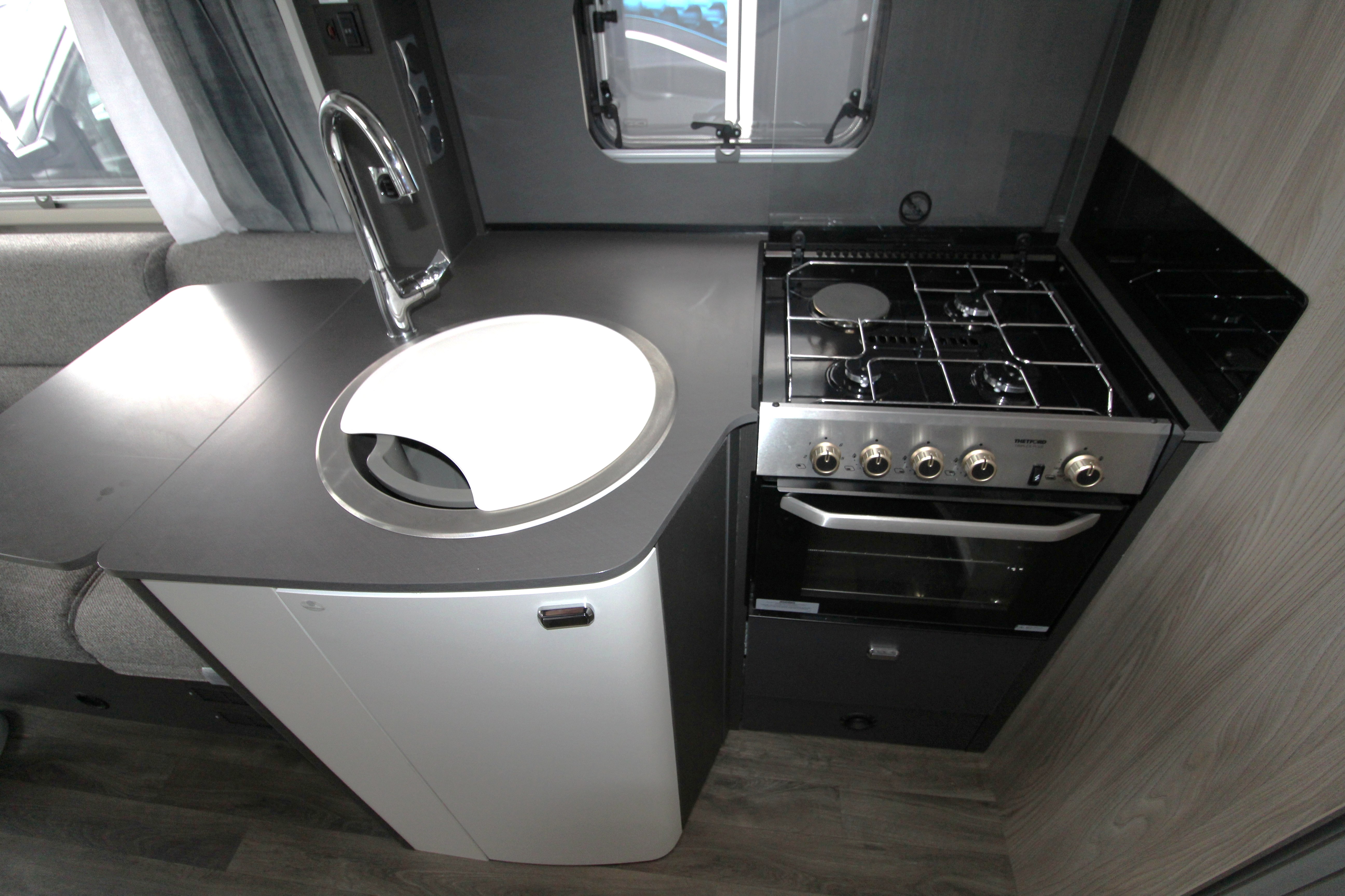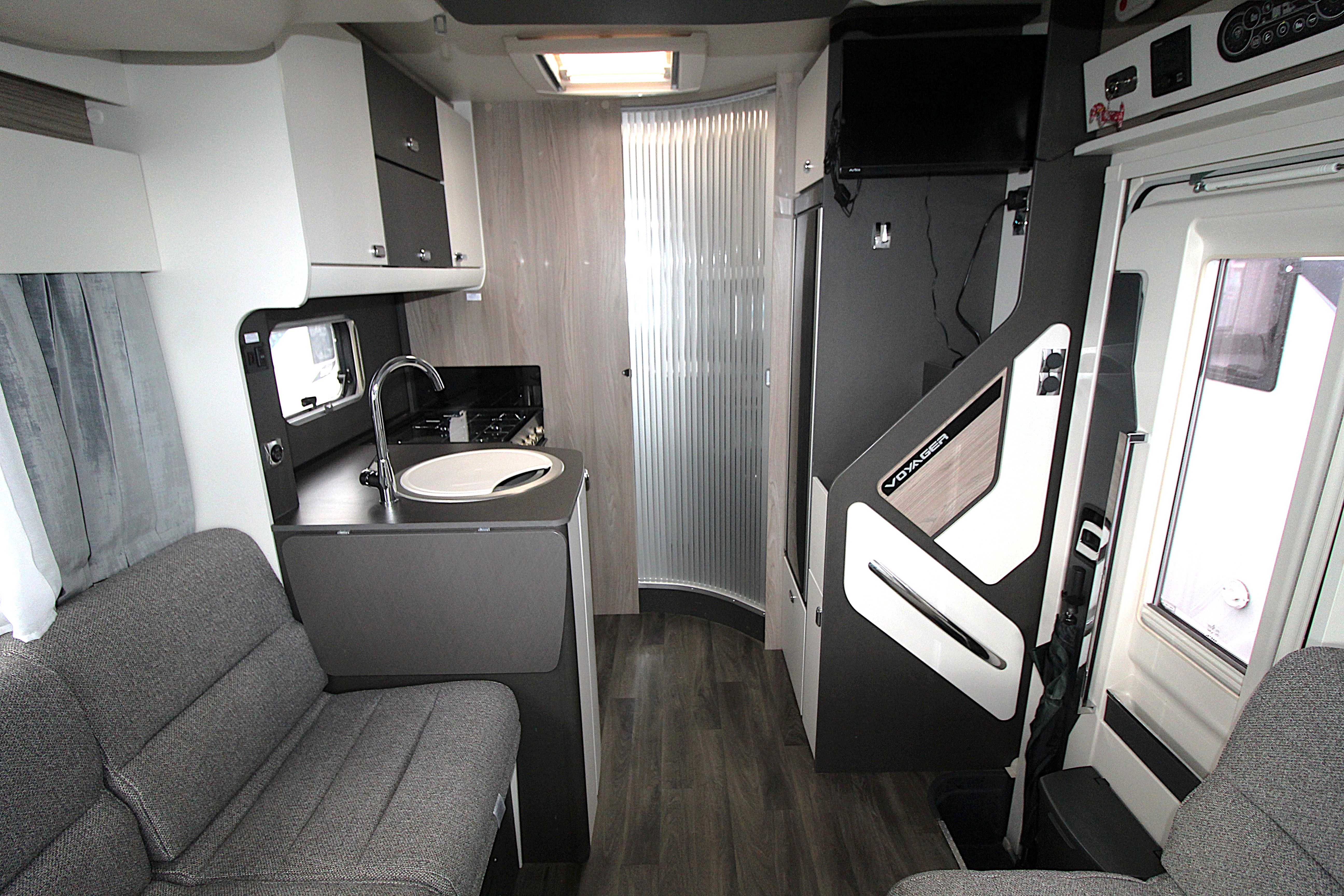 This pre-loved 2024 Swift Voyager 540 is a 4-berth, 4-travel-seat motorhome built on a Ford Transit chassis, offering a premium travel experience for couples or small families. Boasting a drop-down electric bed and spacious end washroom with fantastic storage concealed behind the mirrored doors!