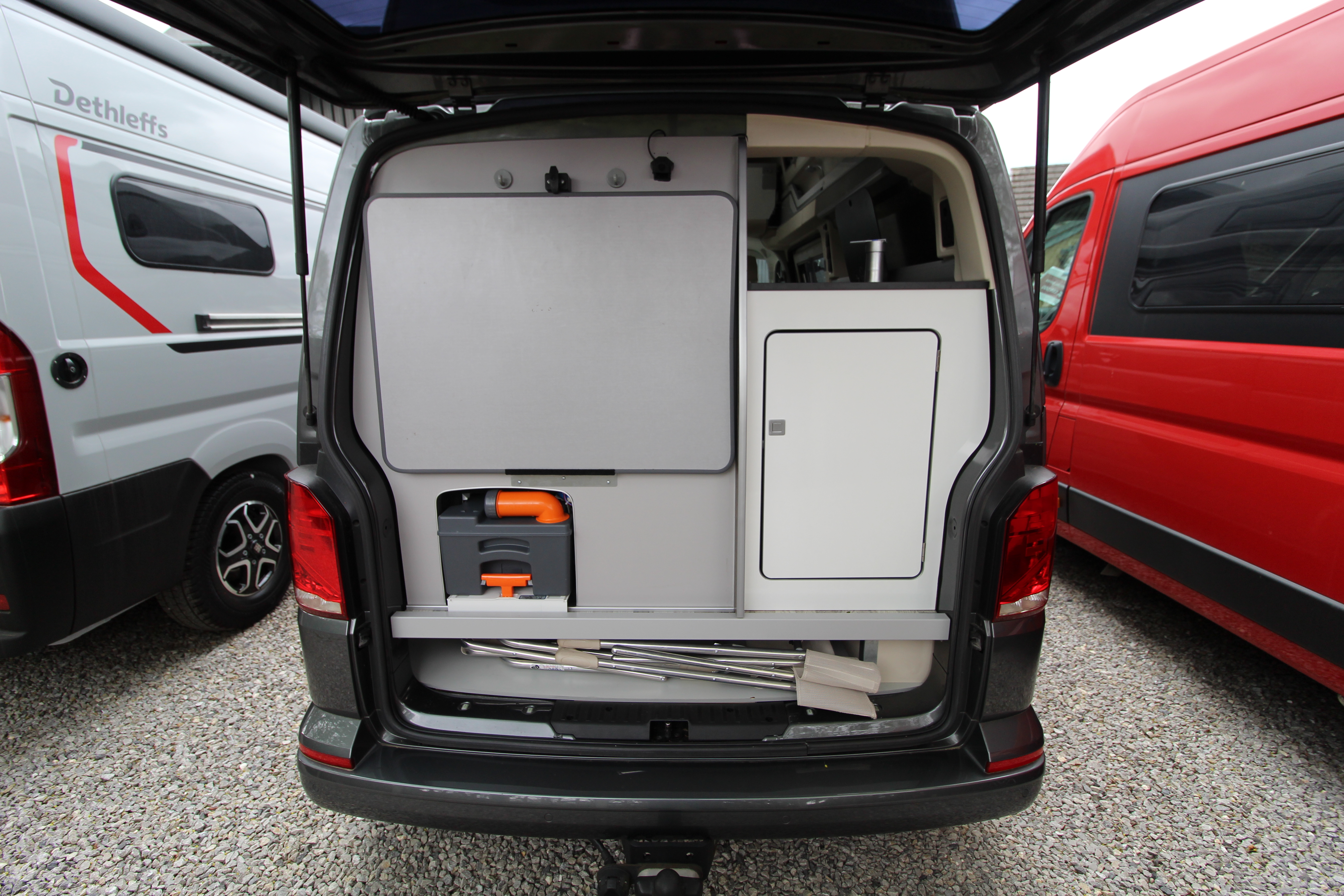 With a generous lounge area, swivel cab seats and the ability to walk around inside making comfort priority, this vehicle also offers a 2-burner hob, sink, fridge along with ample storage cupboards and work surface.