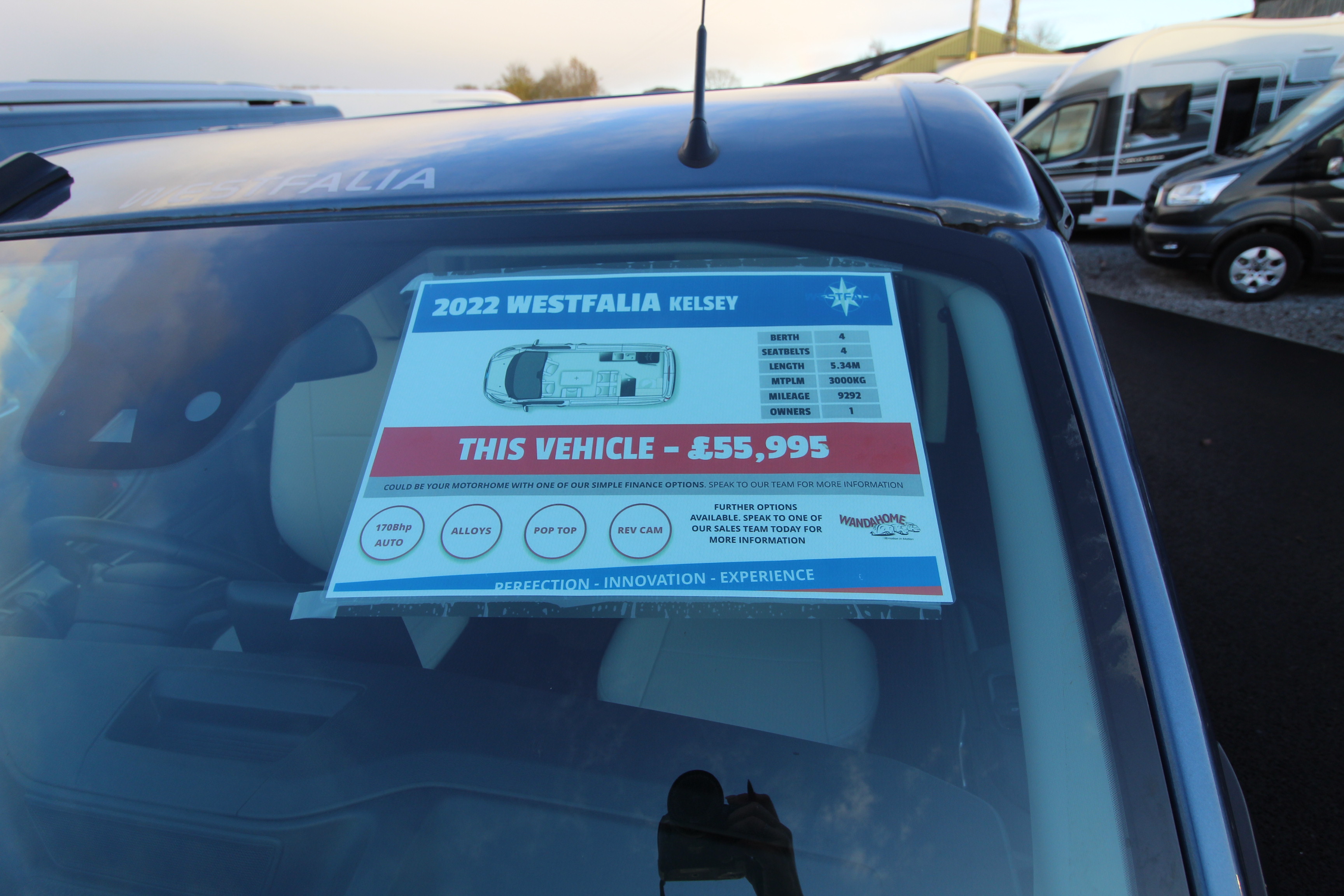 A fantastic opportunity to purchase this popular pre-loved 2022 Westfalia Kelsey, a four-berth pop-top campervan/day vehicle offering all the home comforts you require in a 5.34meter vehicle.