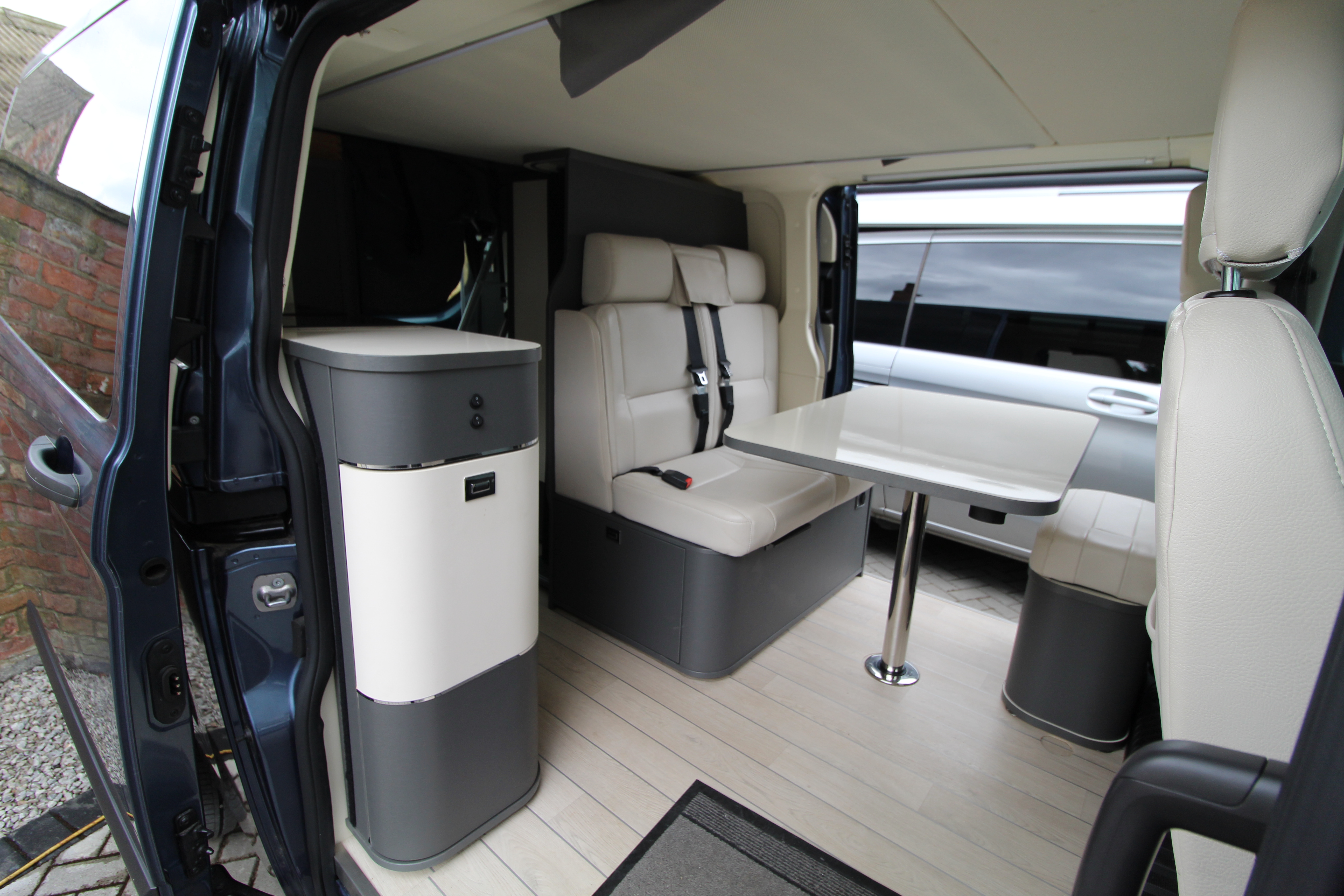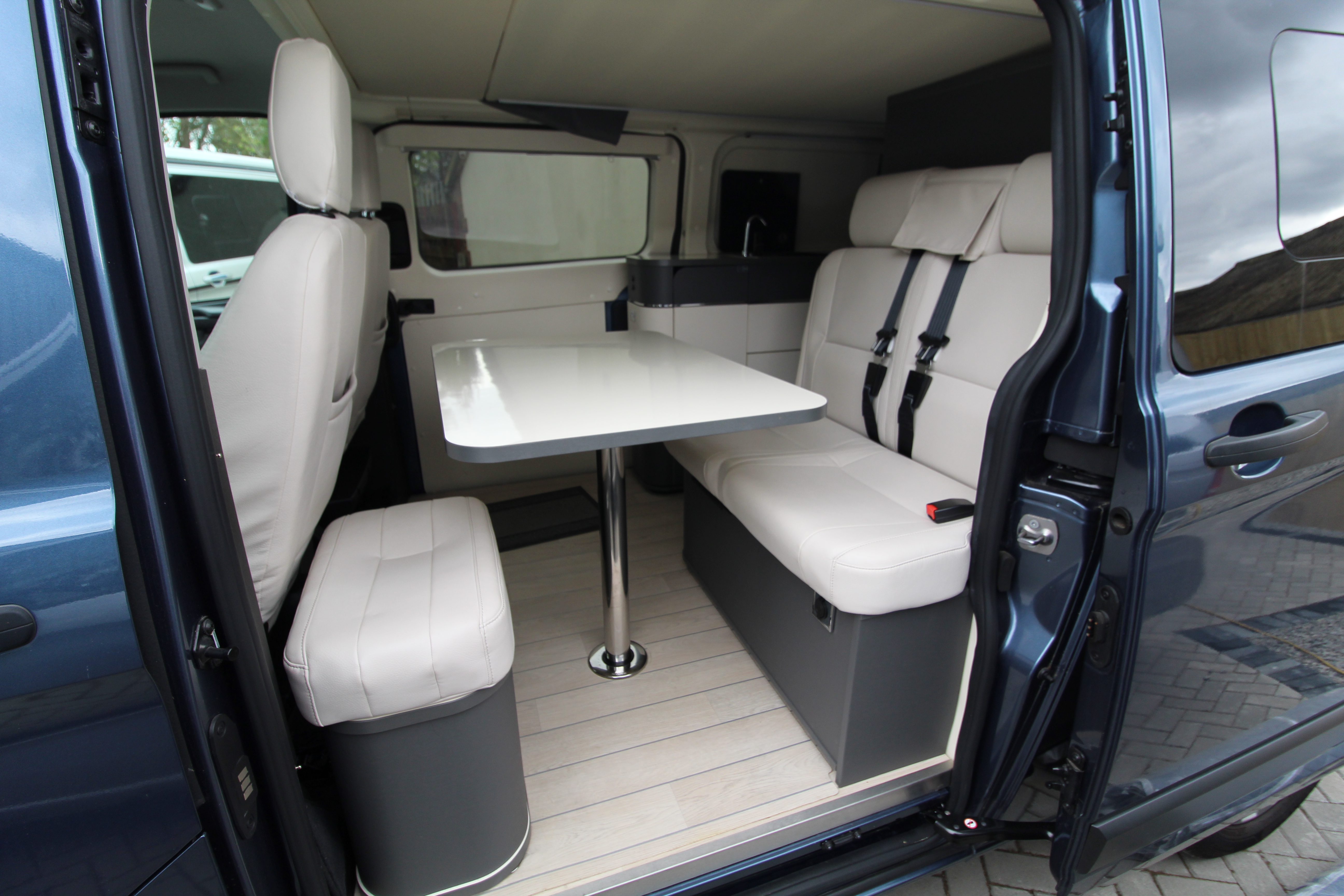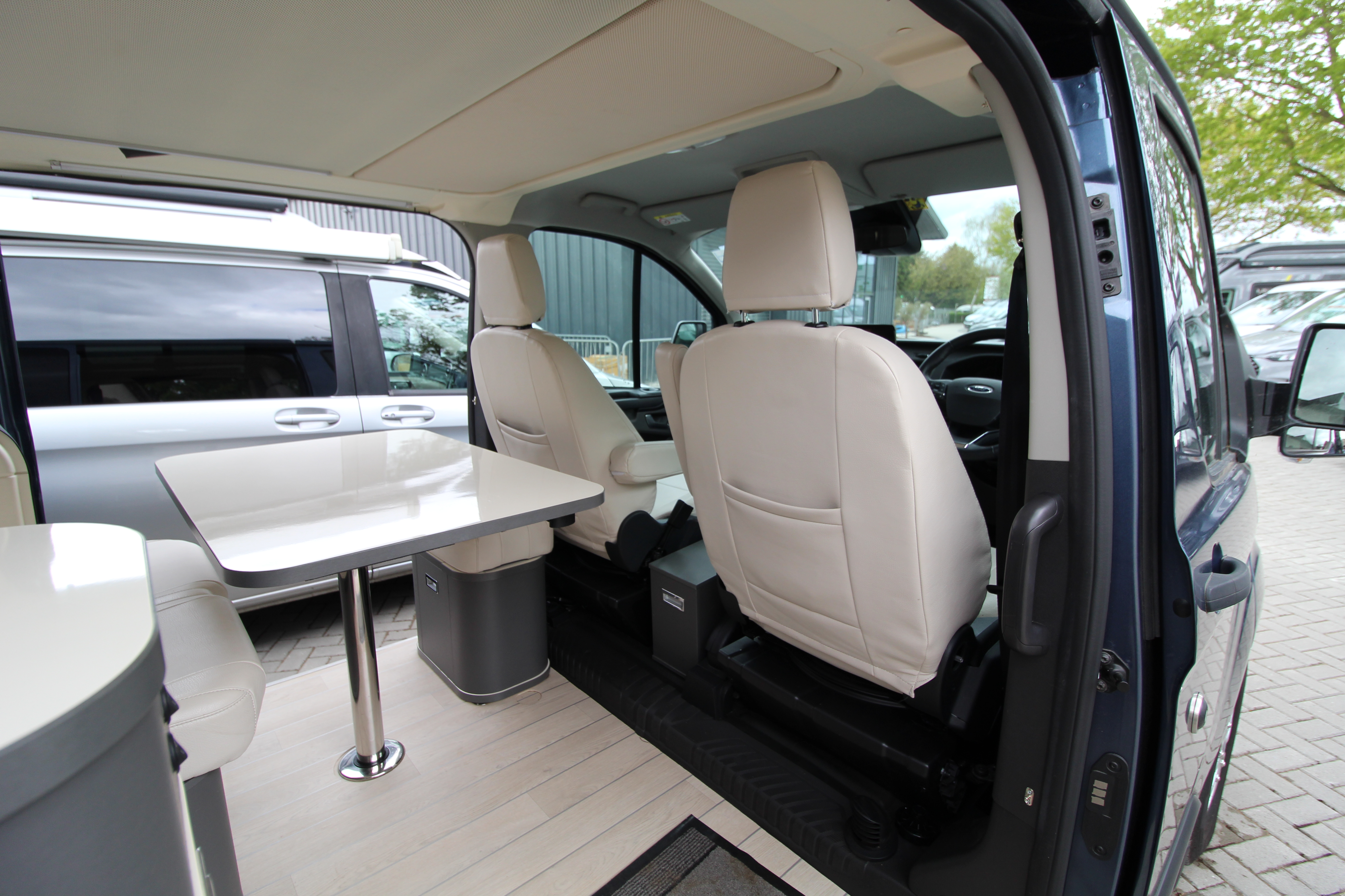 Arriving with only 10,852 miles on the clock this manual transmission vehicle boasts swivel cab seats, twin bench seat and removable table and pouffe. Sliding opening habitation doors on either side of the lounge are perfect for access purposes and ideal on a hot day. The lounge area converts to a sleeping area for 2 people while the pop-top roof accommodates another 2 people.