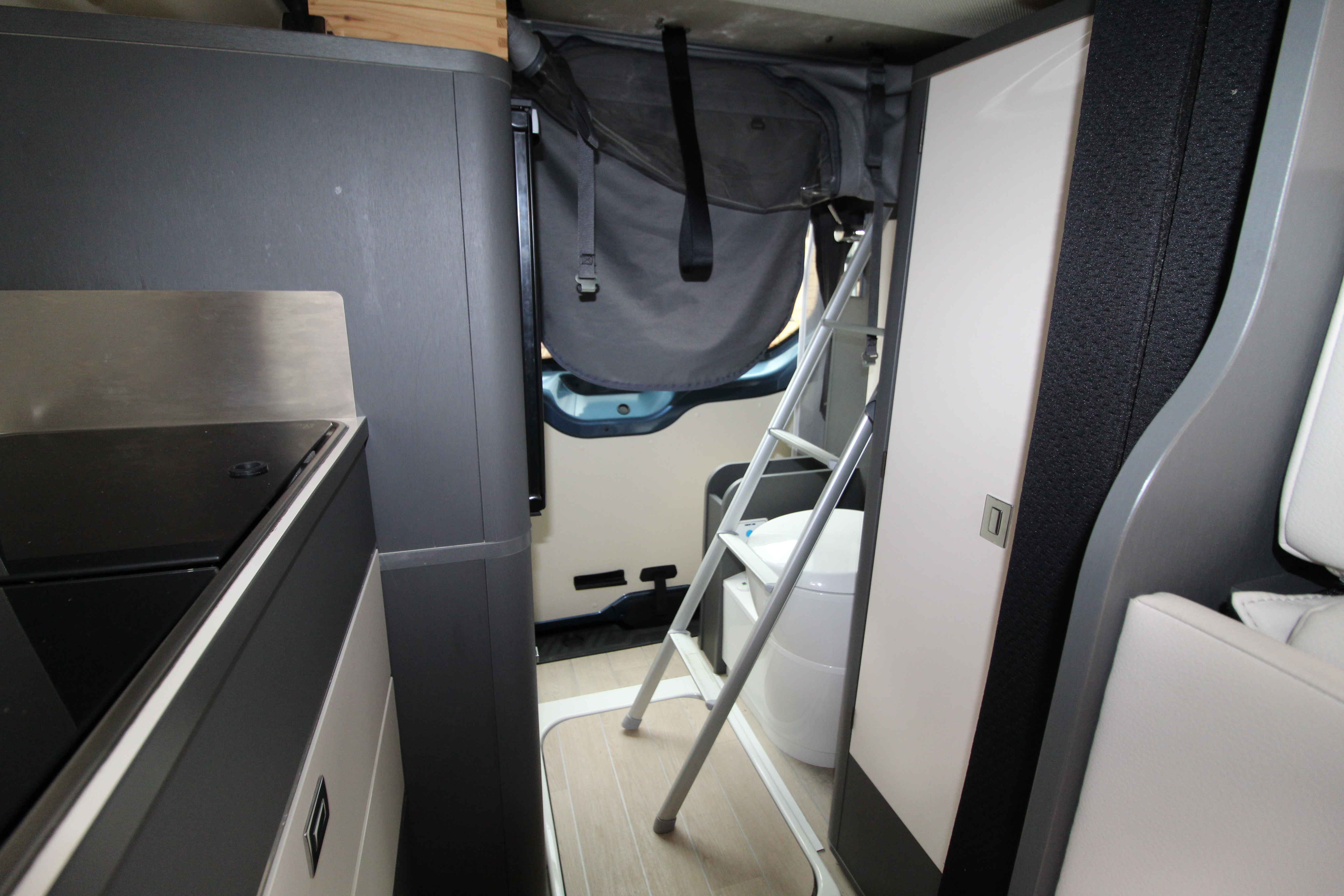 Designed for luxury, it includes a rear washroom with shower/toilet, 51L compressor fridge, Webasto diesel heating, 10L hot water, and a Froli bed system, solar panel, bike rack and an awning.