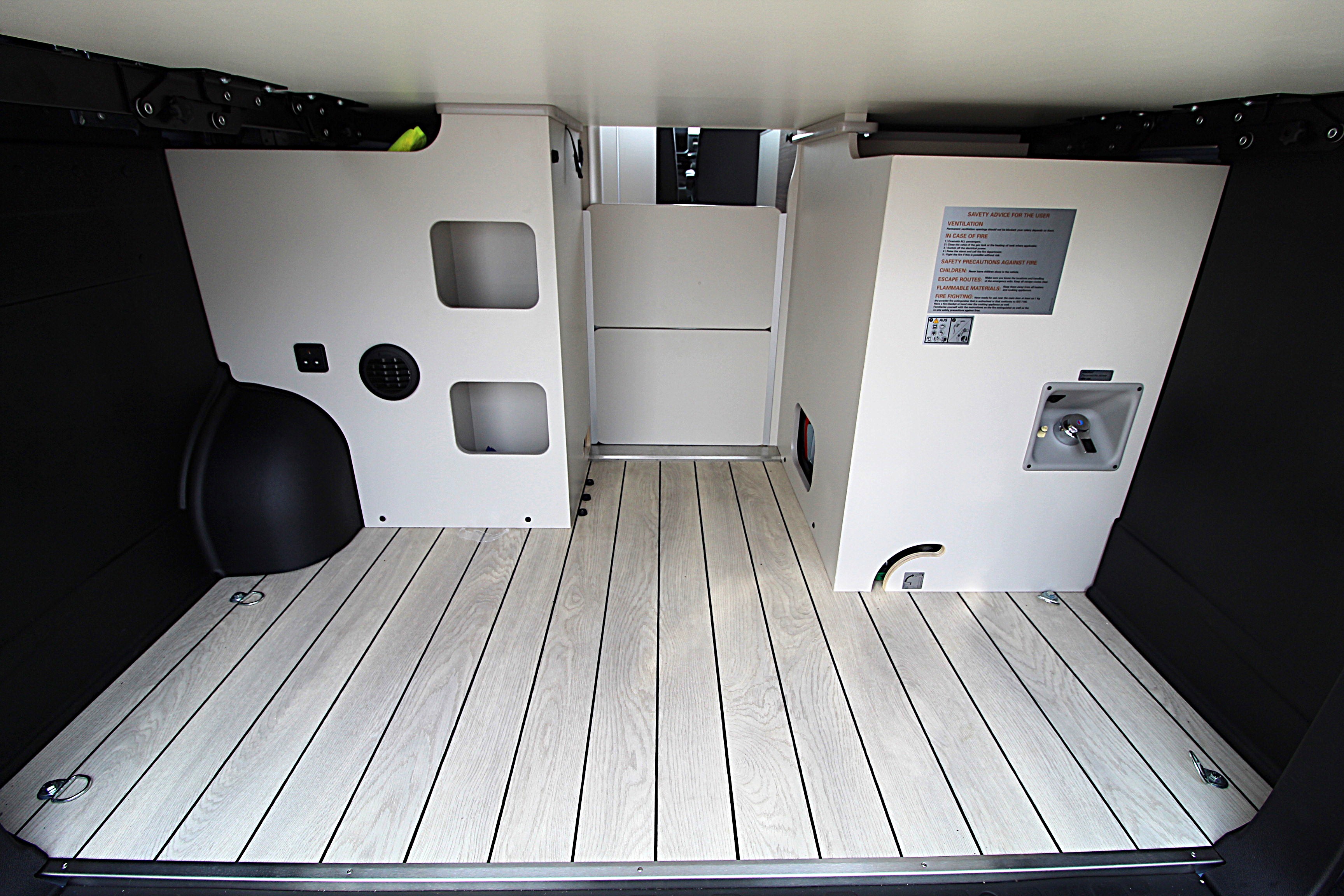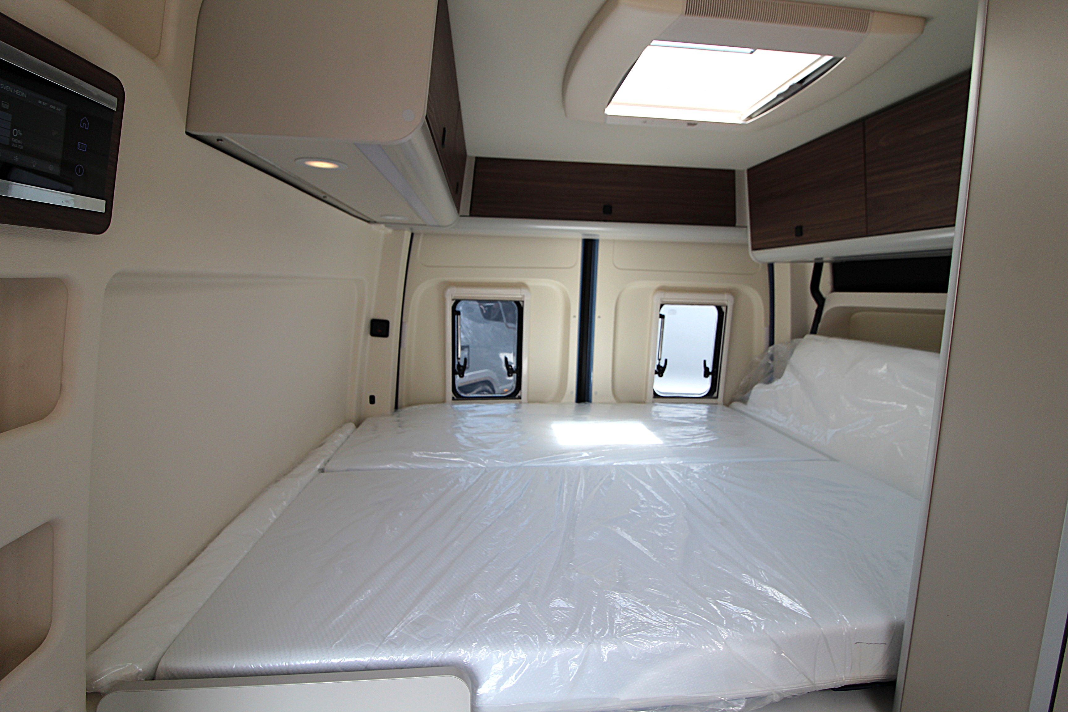 Despite its compact size the Sven Hedin boasts a 2m long and 1.3m wide transverse rear bed with an insulated side pop-out, ensuring a restful night’s sleep. The back of the bed can be folded, meaning there’s plenty of space for bicycles and additional outdoor equipment in the large garage area.